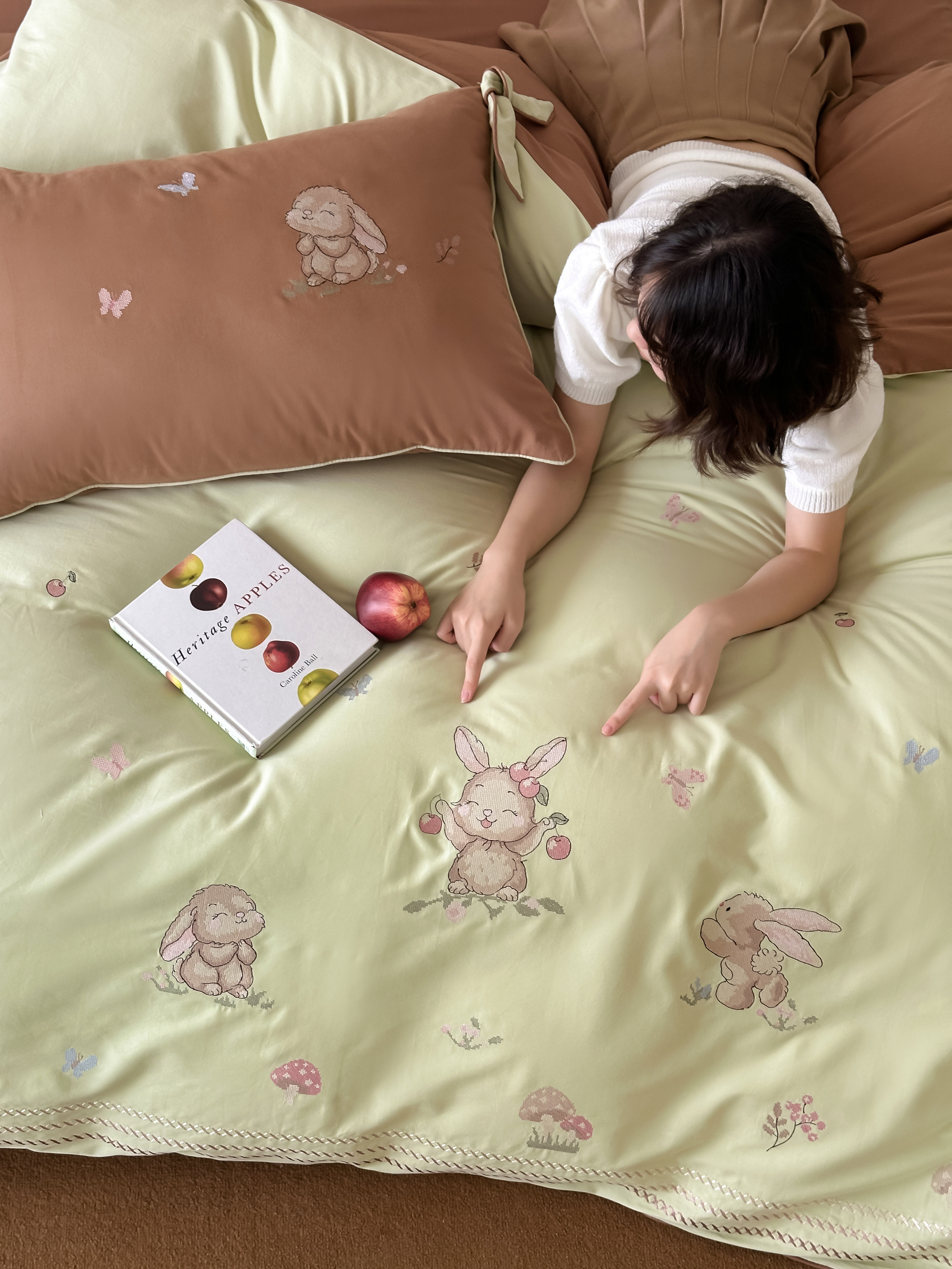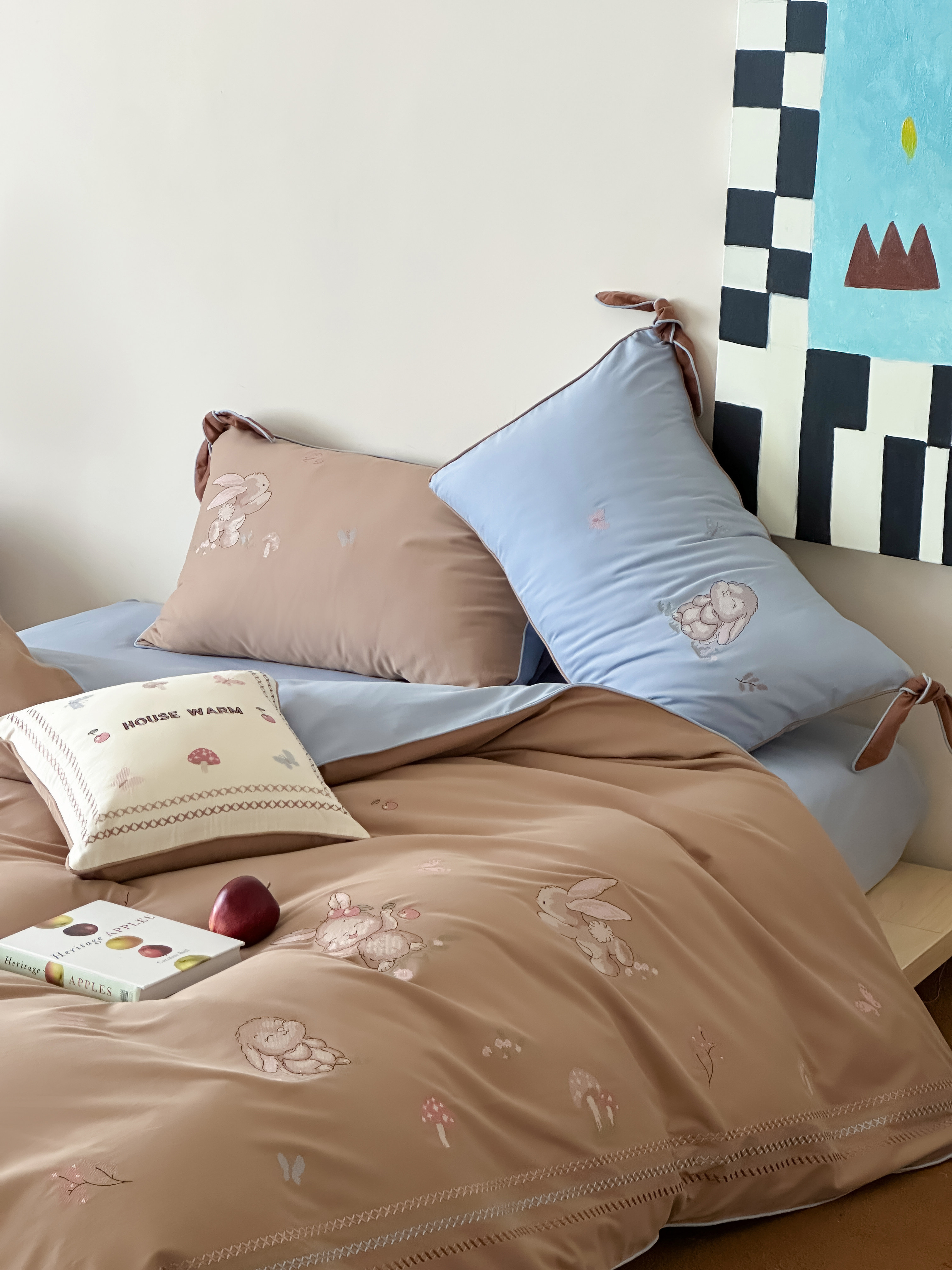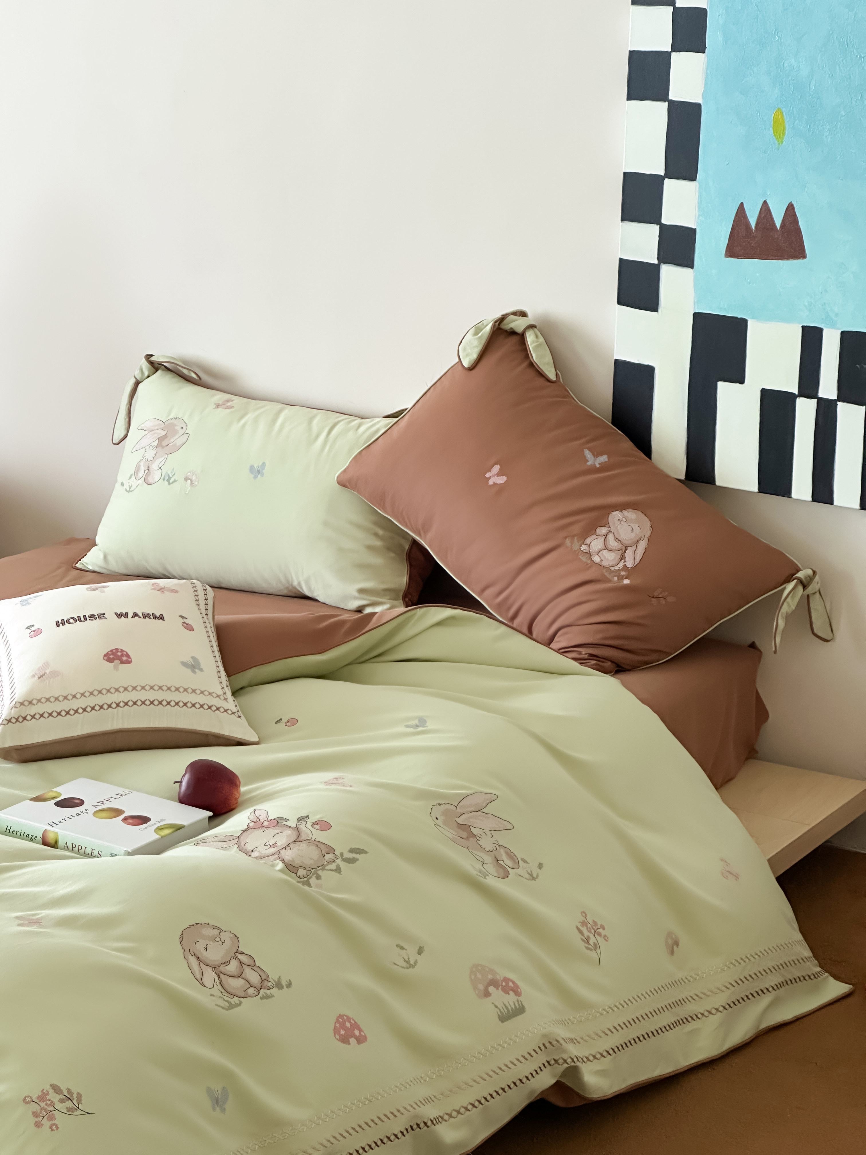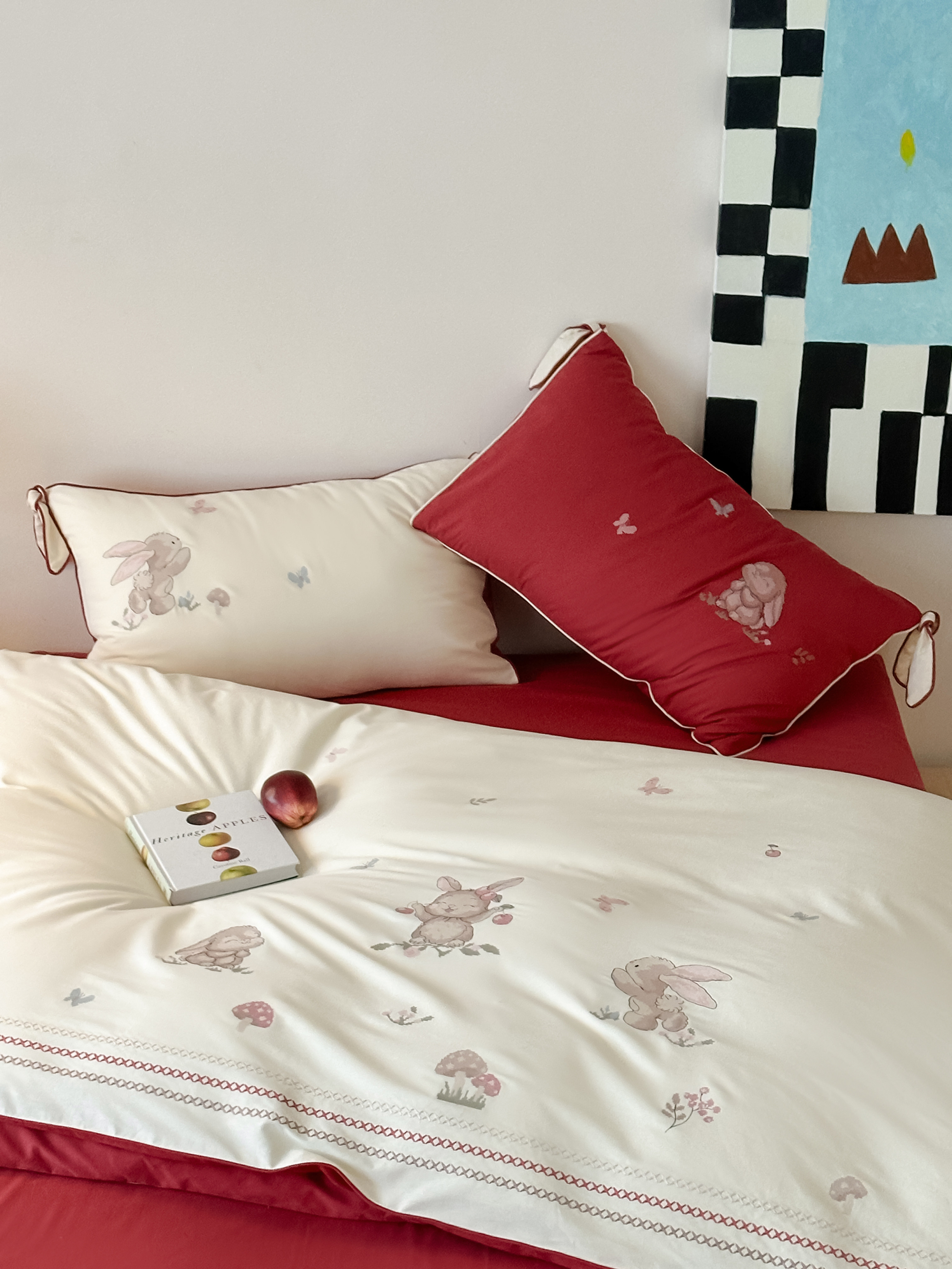 Брендовая детская хлопковая простыня, комплект, кролик с бантиком, хлопковое одеяло, пододеяльник, 4 предмета, с вышивкой, постельные принадлежности