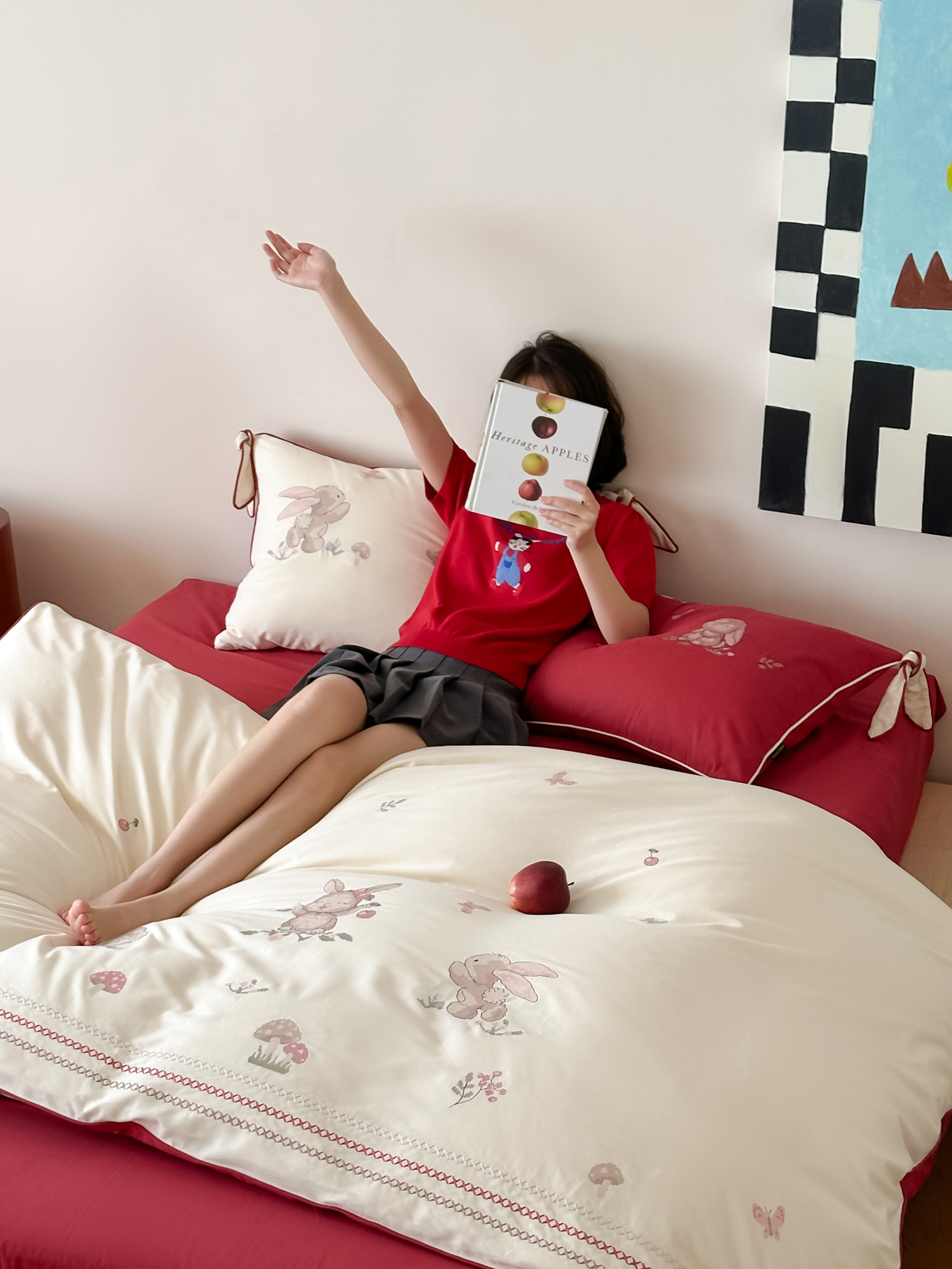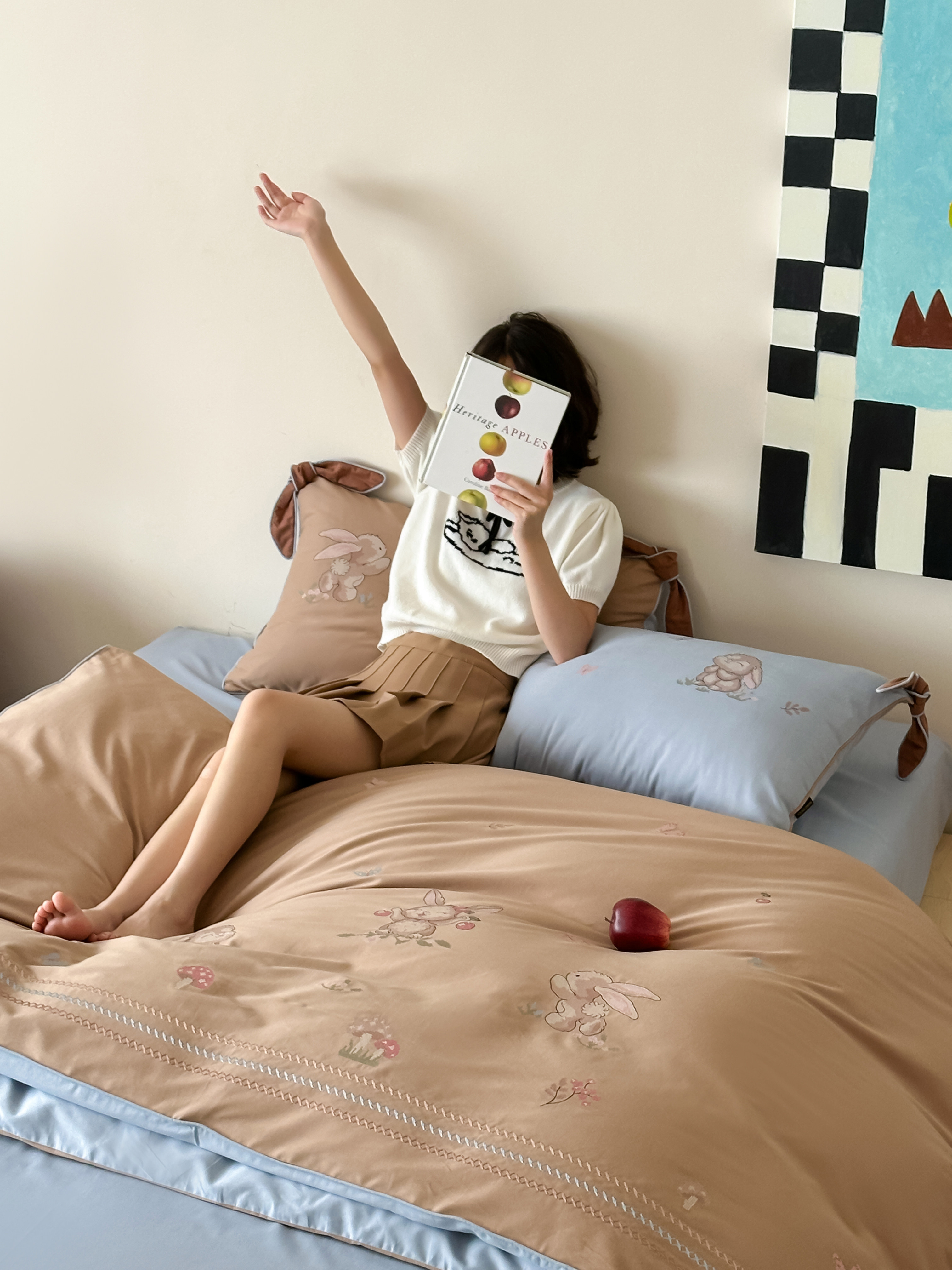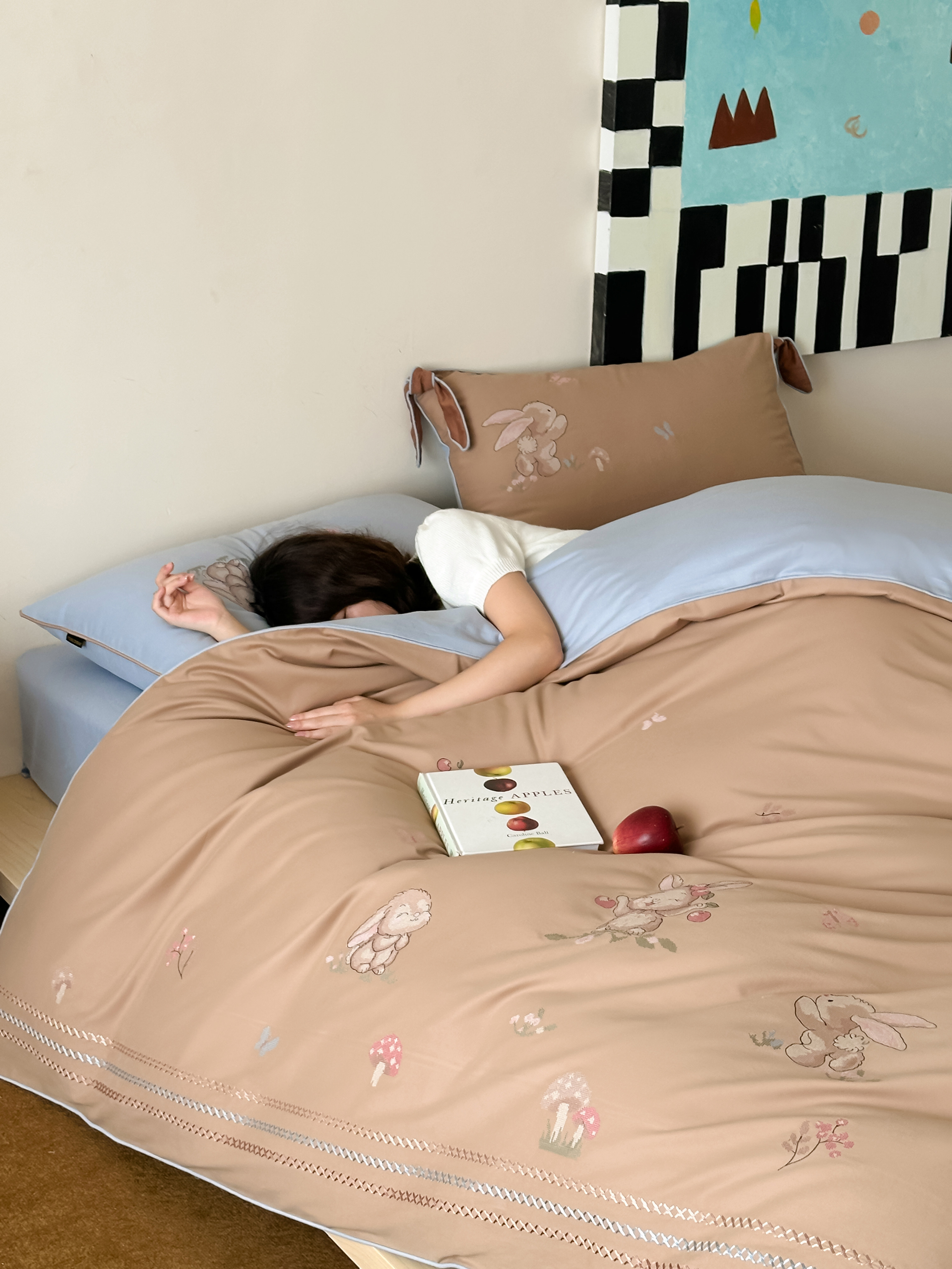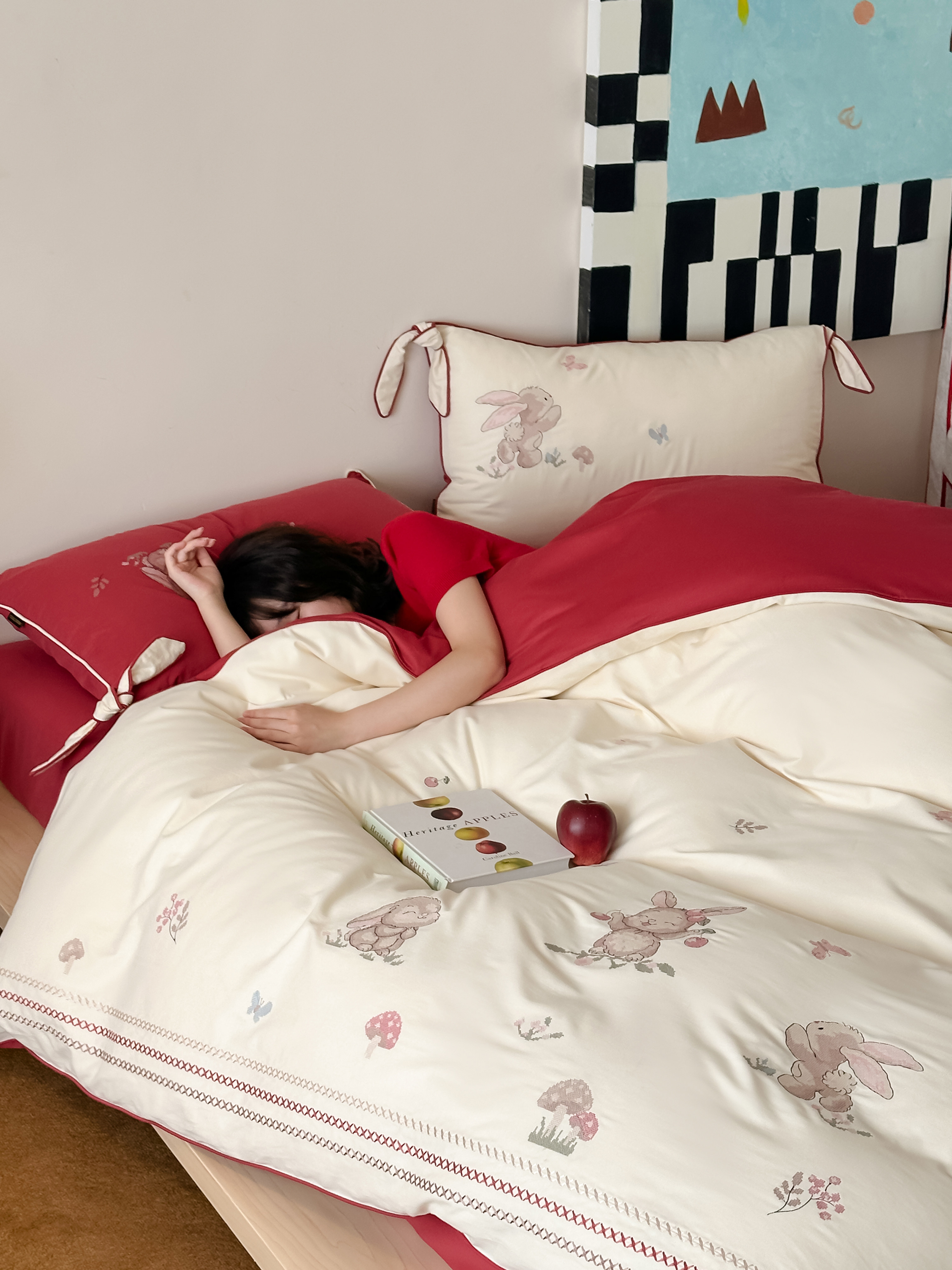 Брендовая детская хлопковая простыня, комплект, кролик с бантиком, хлопковое одеяло, пододеяльник, 4 предмета, с вышивкой, постельные принадлежности