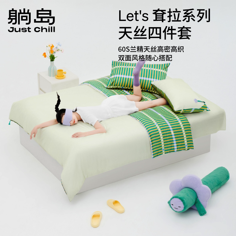 躺岛 Комплект, пододеяльник, летняя простыня, шелковое покрывало, 4 предмета, легкий роскошный стиль, 3 предмета