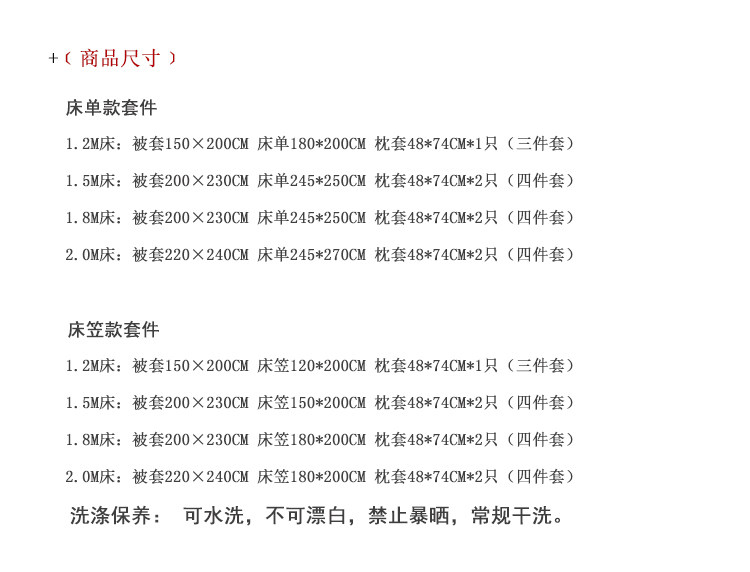 | Ширина кровати: | Кровать длиной 1,5 метра, комплект из четырех предметов (подходит для одеяла размером 200*230 см), Комплект из четырех предметов кровати длиной 1,8 м (подходит для одеяла размером 200*230 см), Комплект из четырёх предметов для кровати шириной 2,0 метра (подходит для одеяла размером 220*240 см) |