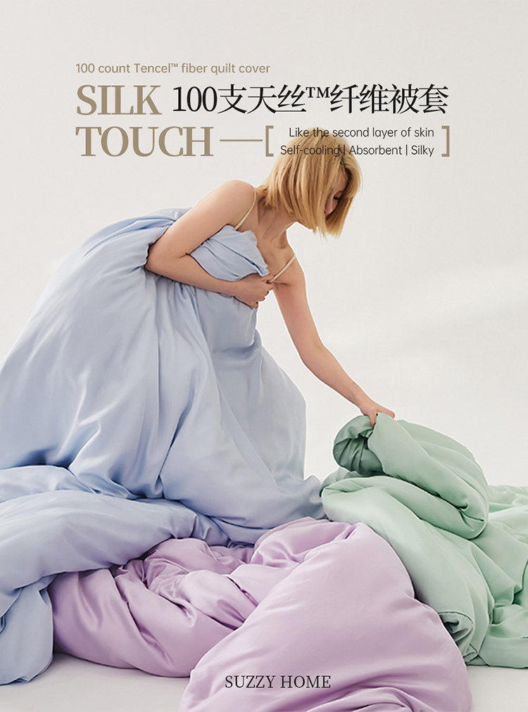 100s Lenzing Tencel Пододеяльник Сплошной цвет Лиоцелл Простыня Прохладный для кожи Современный стиль Комплект из трех предметов