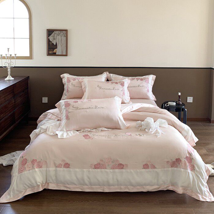 Летний комплект, кровать, простыня, пододеяльник, покрывало, изысканный стиль, с вышивкой, 80 шт, 4 предмета