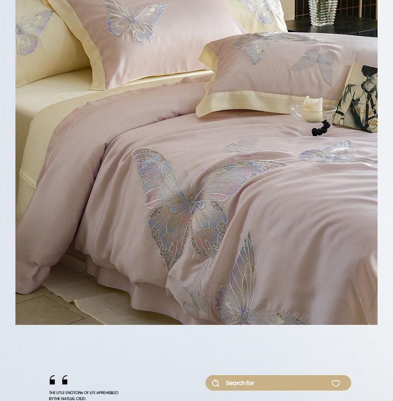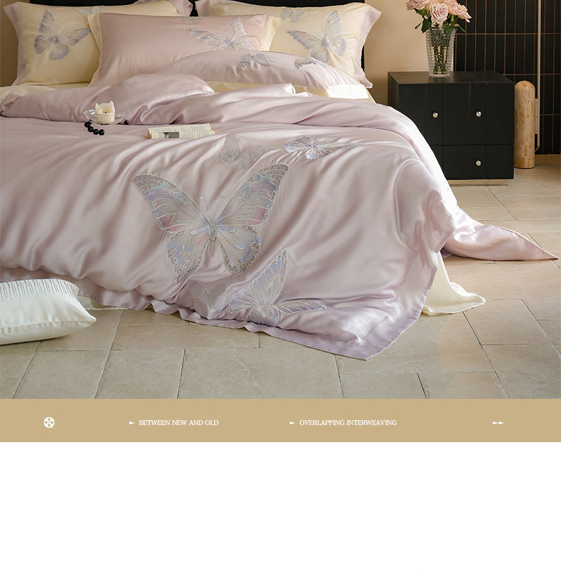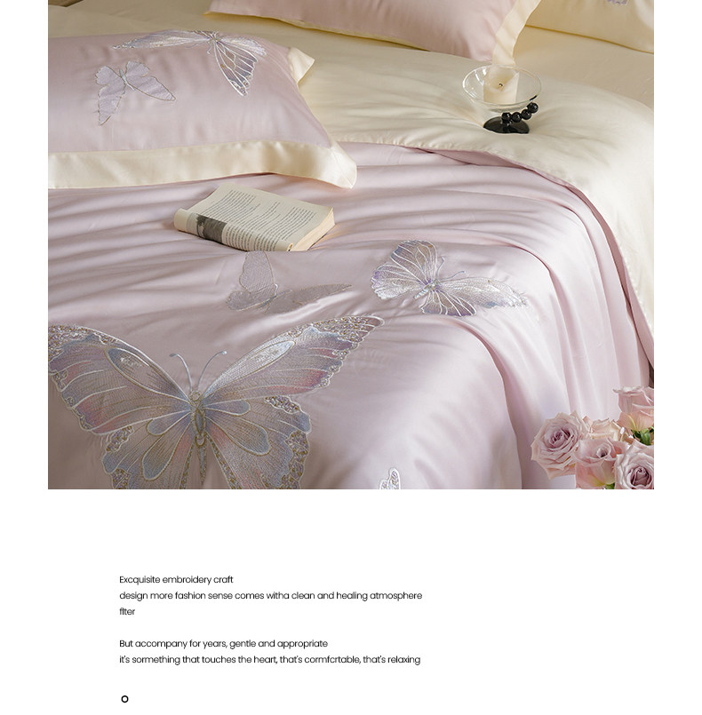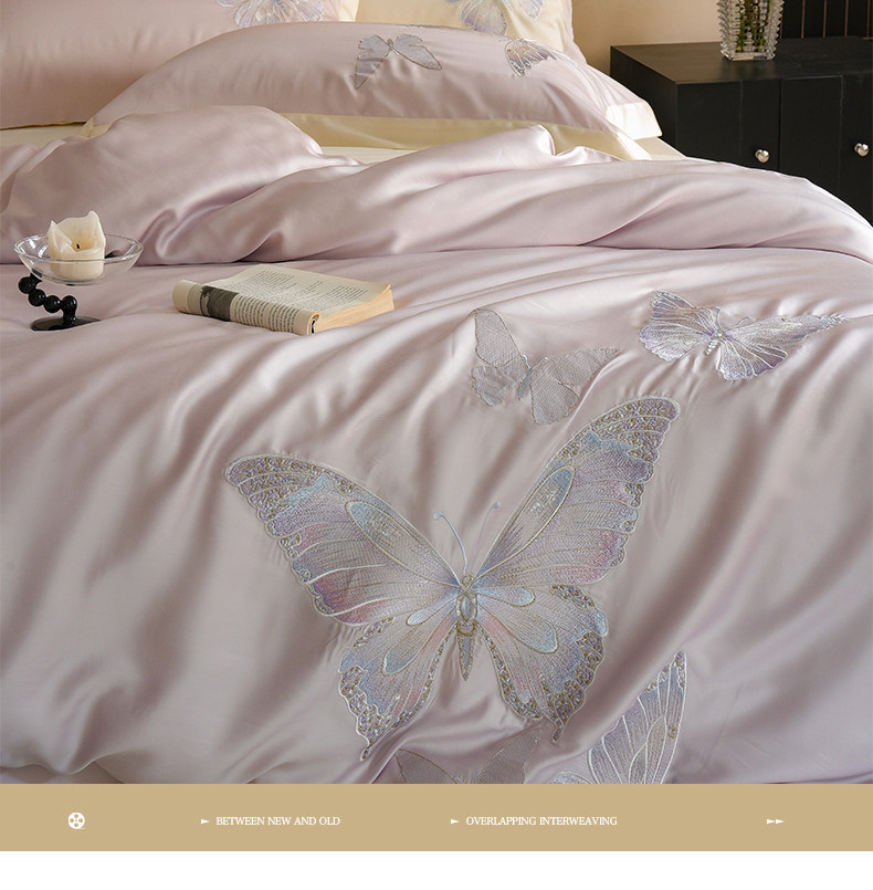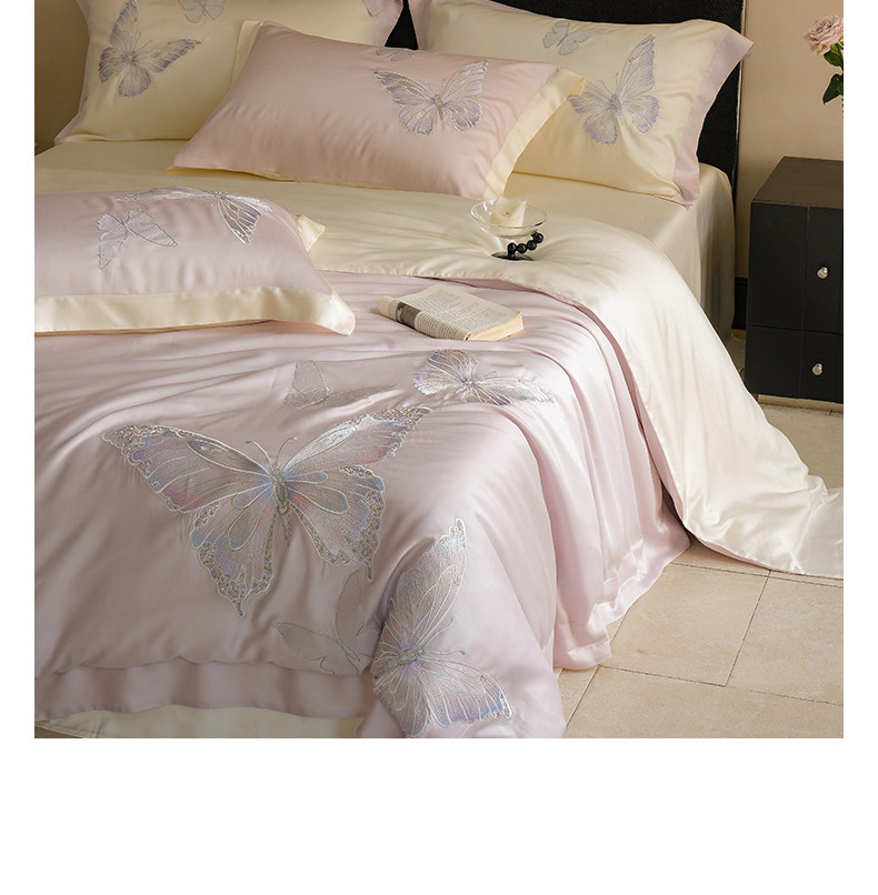 Покрывало с бабочкой, летний комплект, кровать, простыня, пододеяльник, с вышивкой, 4 предмета, изысканный стиль