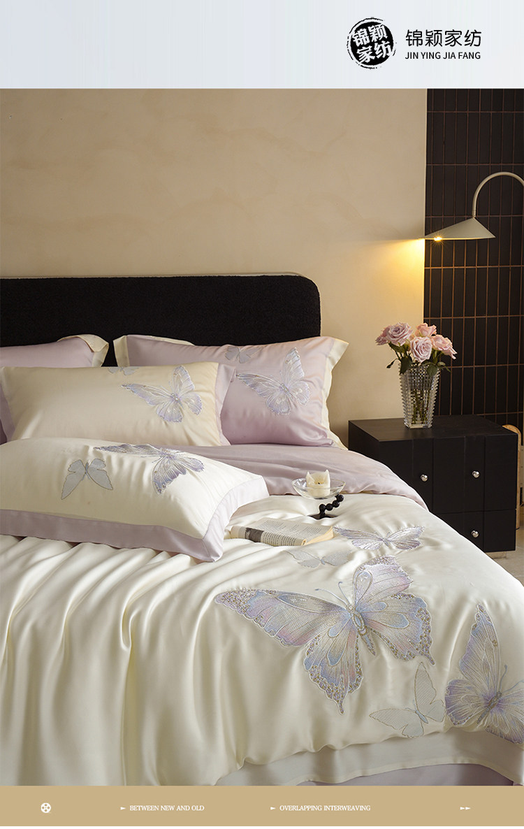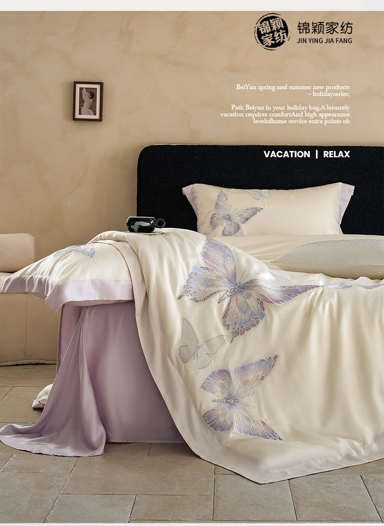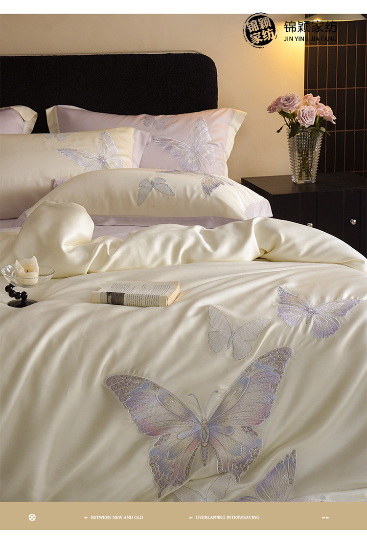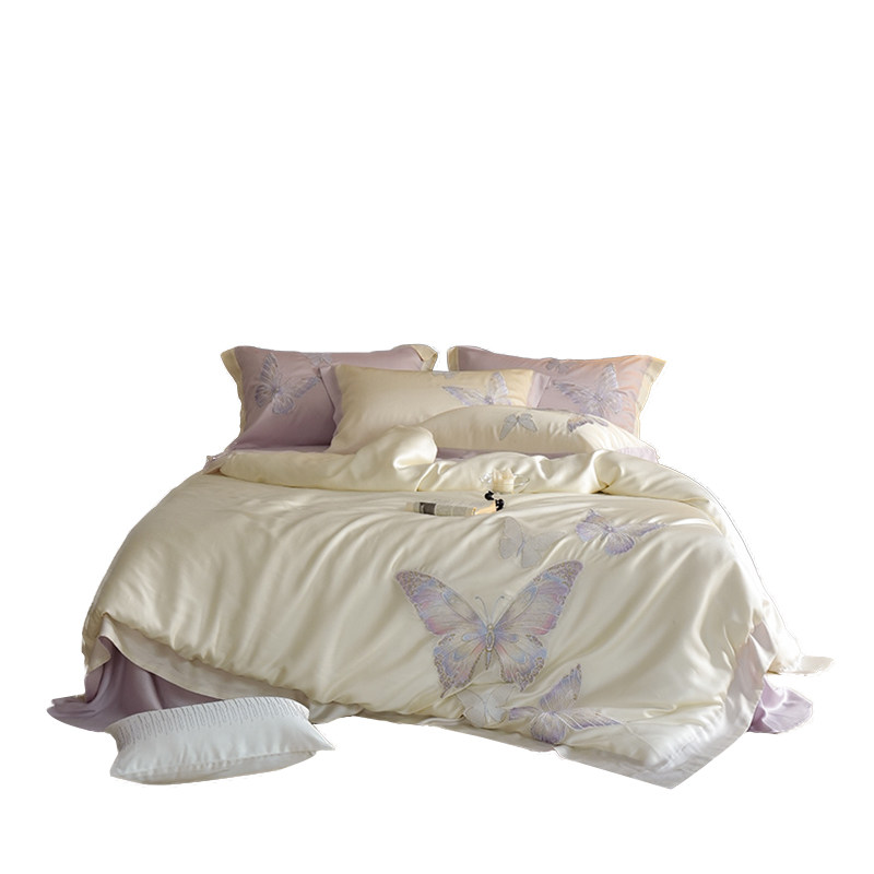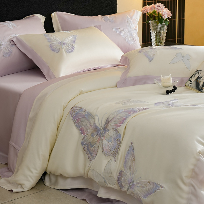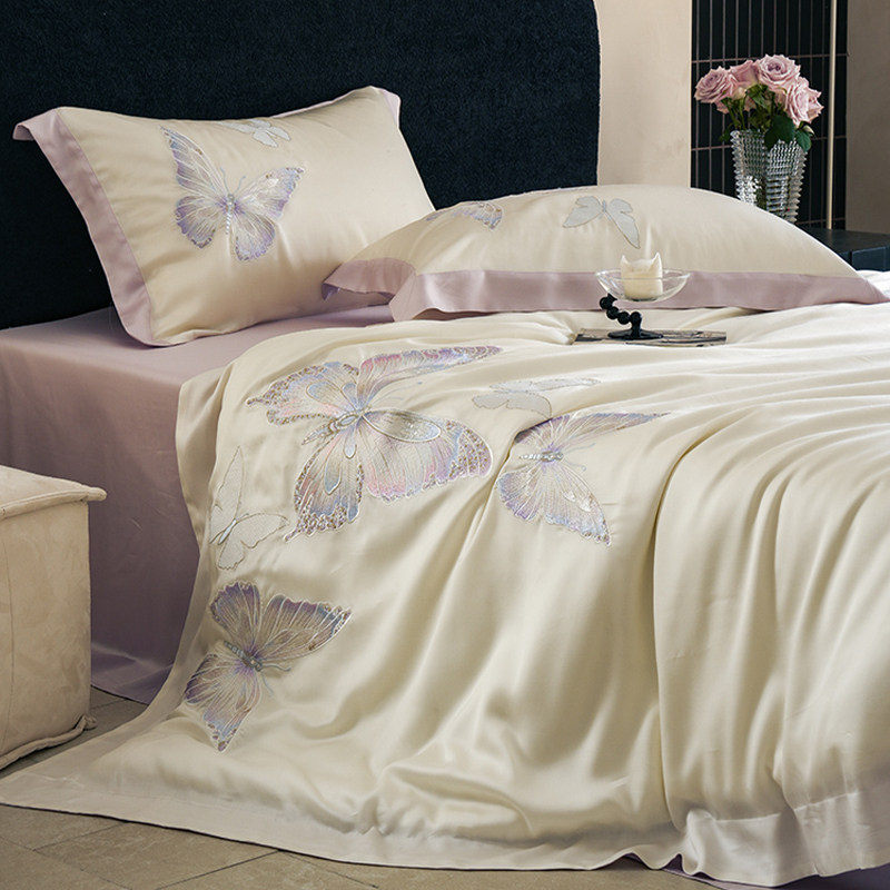 Покрывало с бабочкой, летний комплект, кровать, простыня, пододеяльник, с вышивкой, 4 предмета, изысканный стиль
