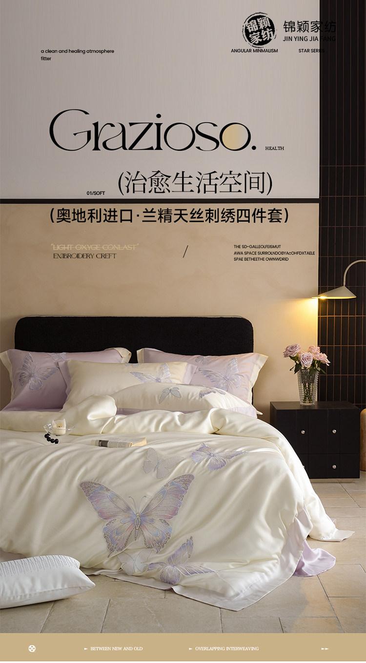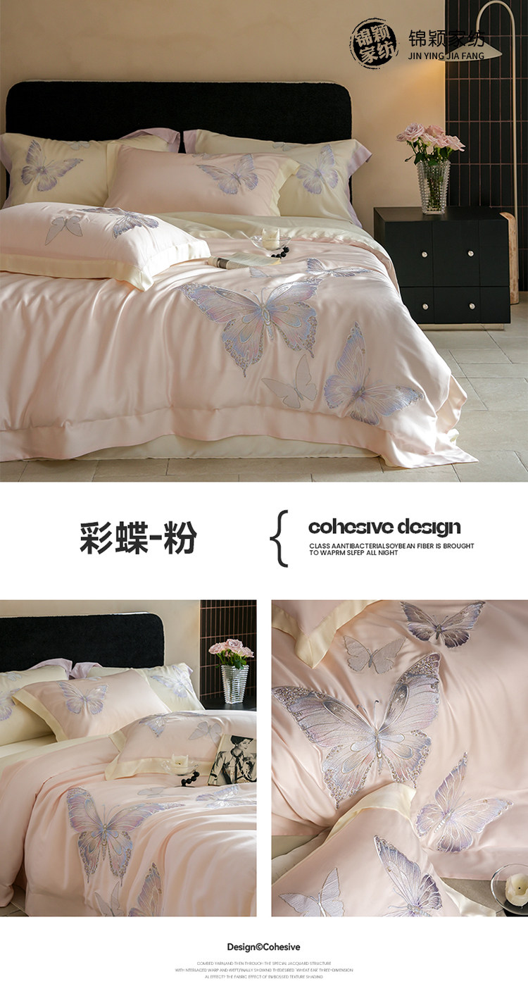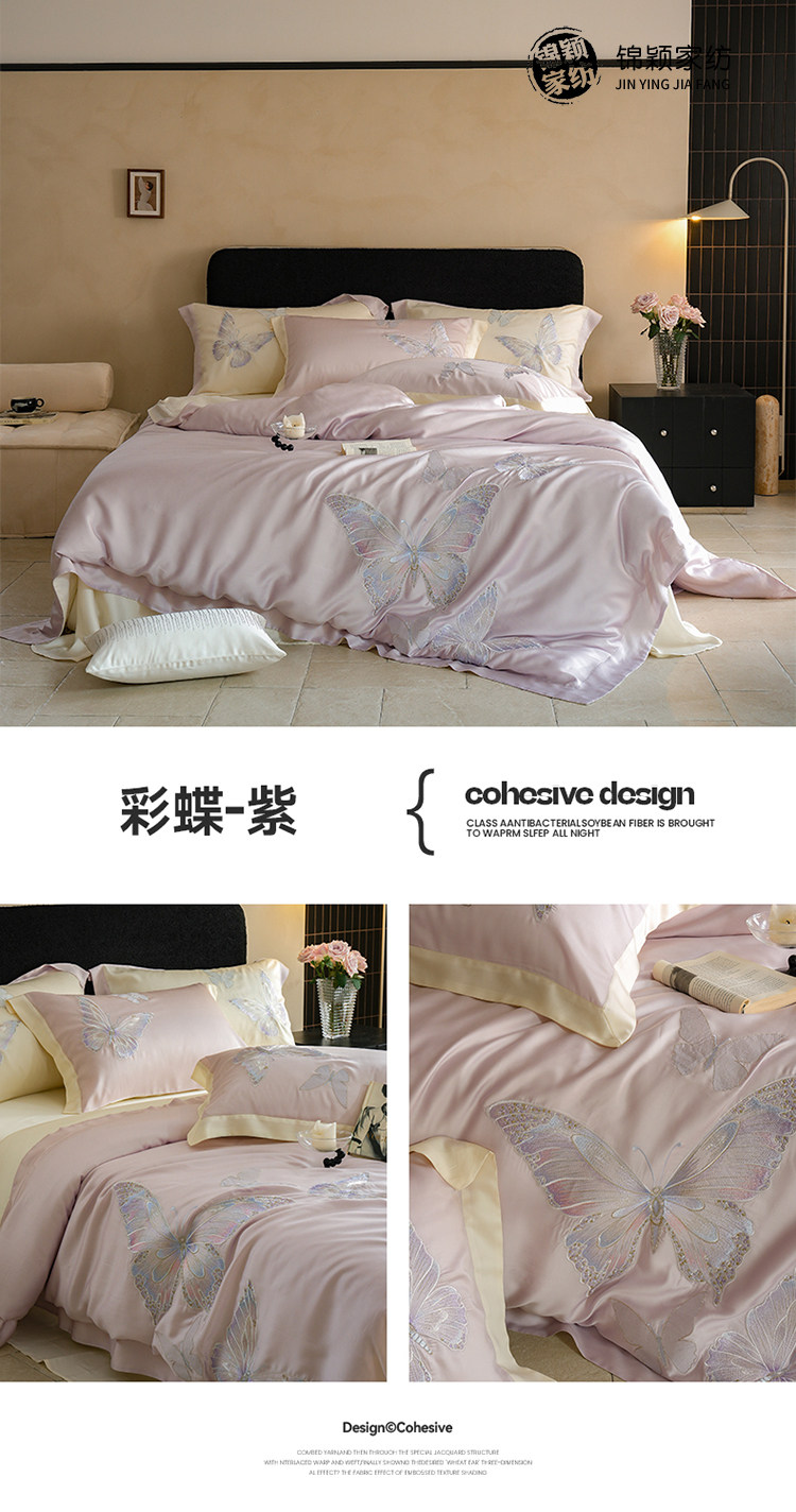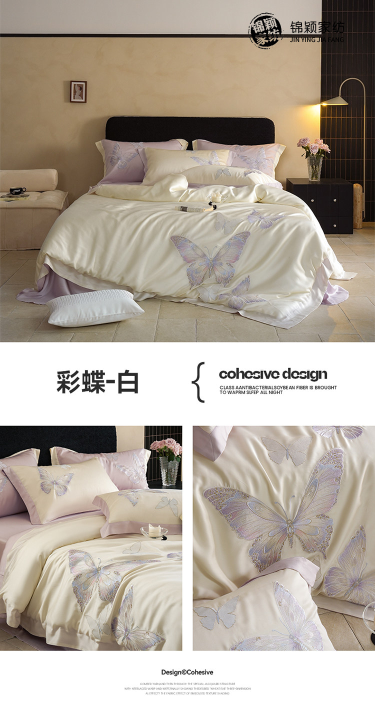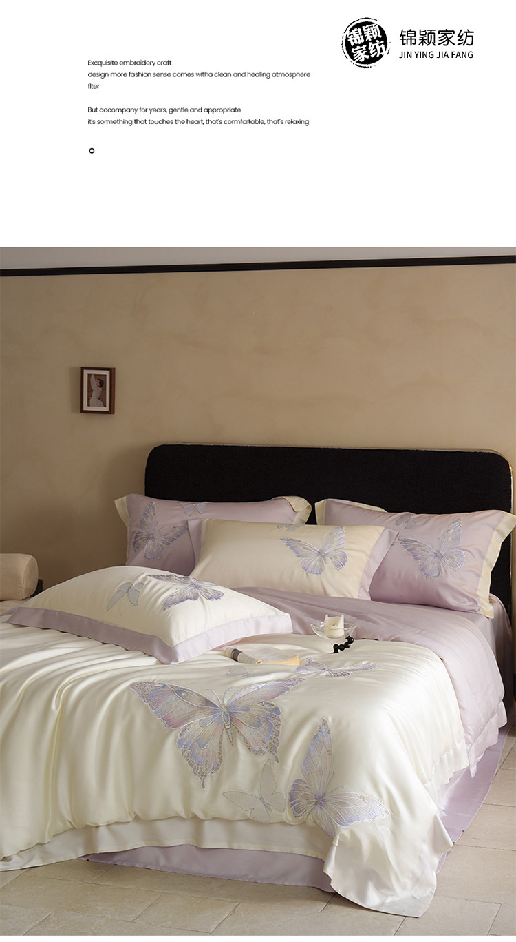 Покрывало с бабочкой, летний комплект, кровать, простыня, пододеяльник, с вышивкой, 4 предмета, изысканный стиль