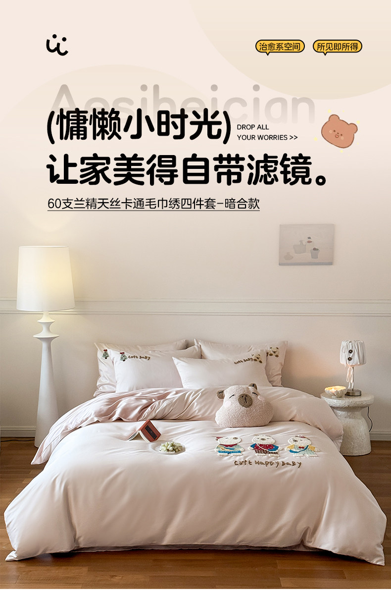 Мультяшное полотенце, комплект, пододеяльник, летняя простыня, 4 предмета, постельные принадлежности
