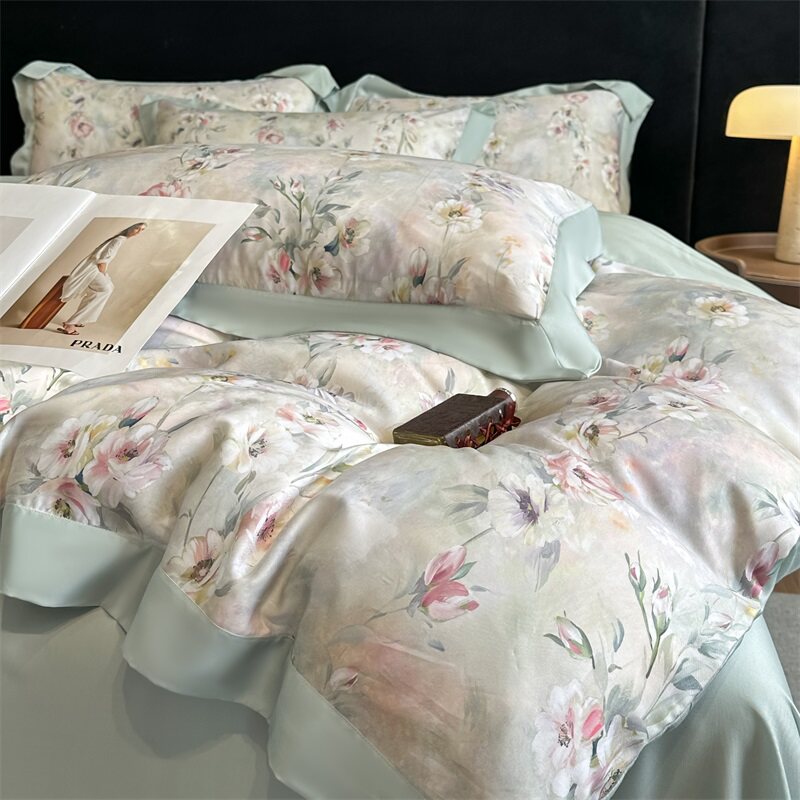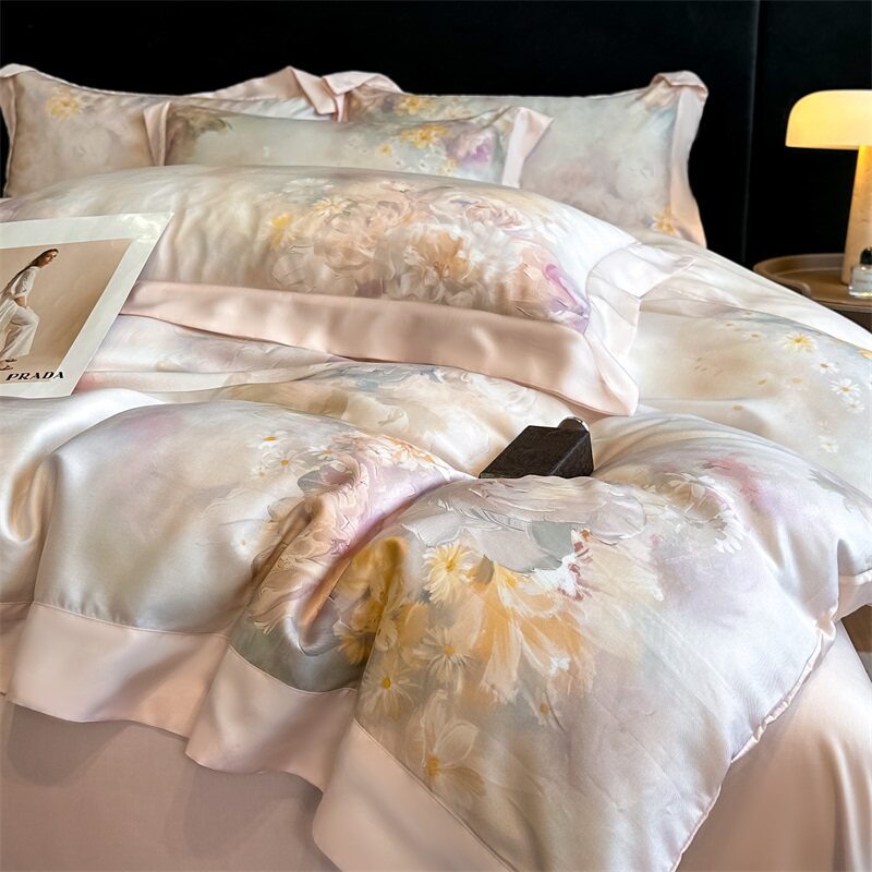 Летний комплект для матери и ребенка, шелковая простыня, пододеяльник, покрывало, изысканный стиль, А-силуэт, 4 предмета