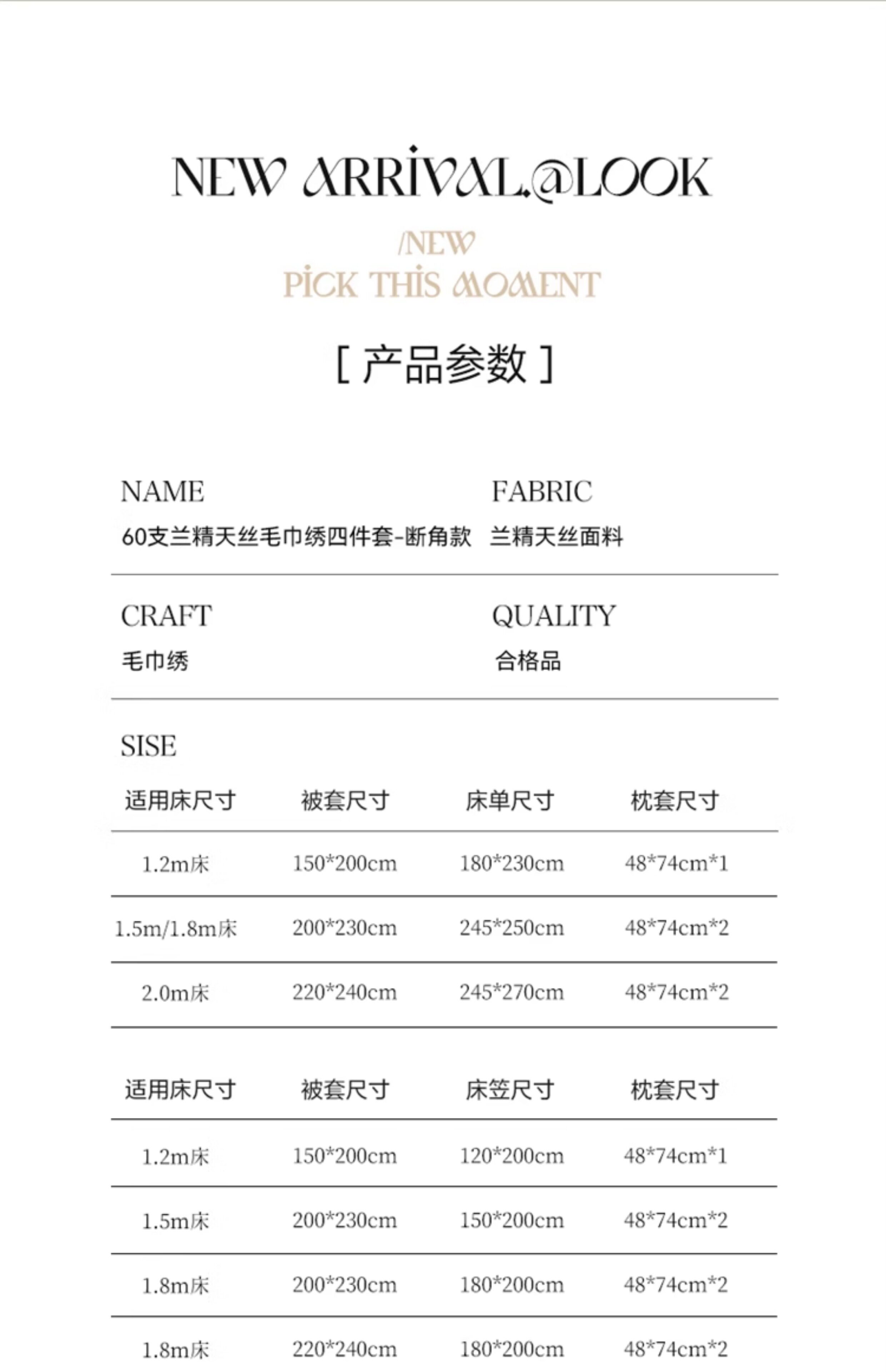 | Ширина кровати: | 1,2 млн. Кровати набор из трех -цепей 丨 Применимо к Core 150*200, 1,5 млн. Кровать четырех -набор 丨 Применимо к Core 200*230, 1,8 млн. Кровать четырех -набор 丨 Применимо к Core 200*230, 2,0 -метровая кровать четырех -набор 丨 Подходит для Core 220*240 |