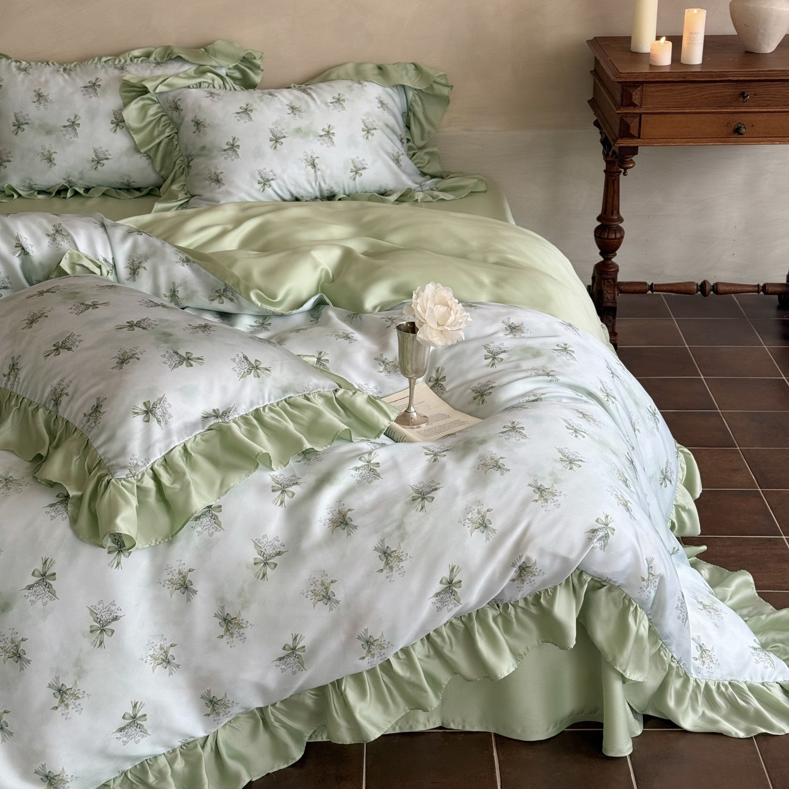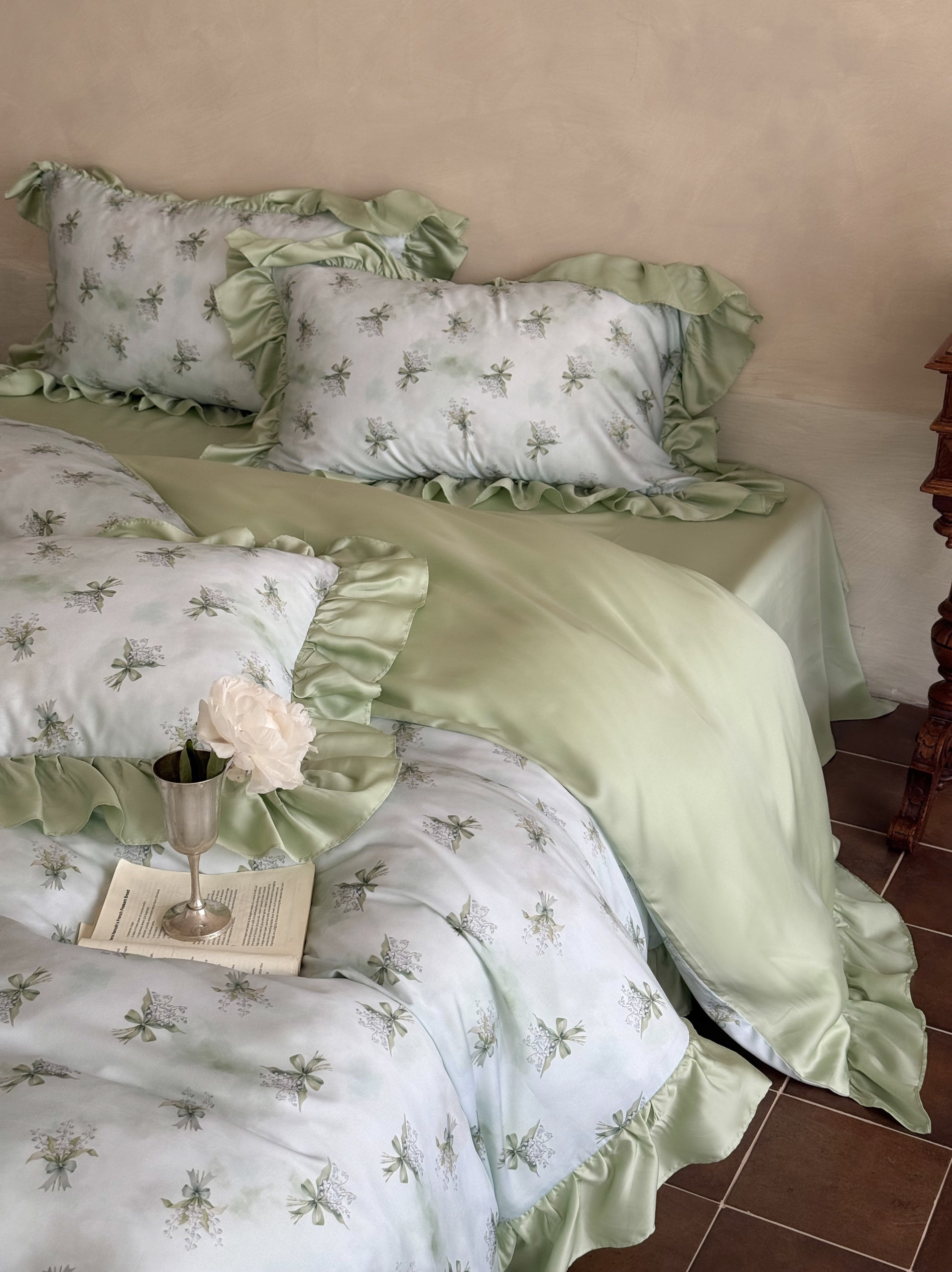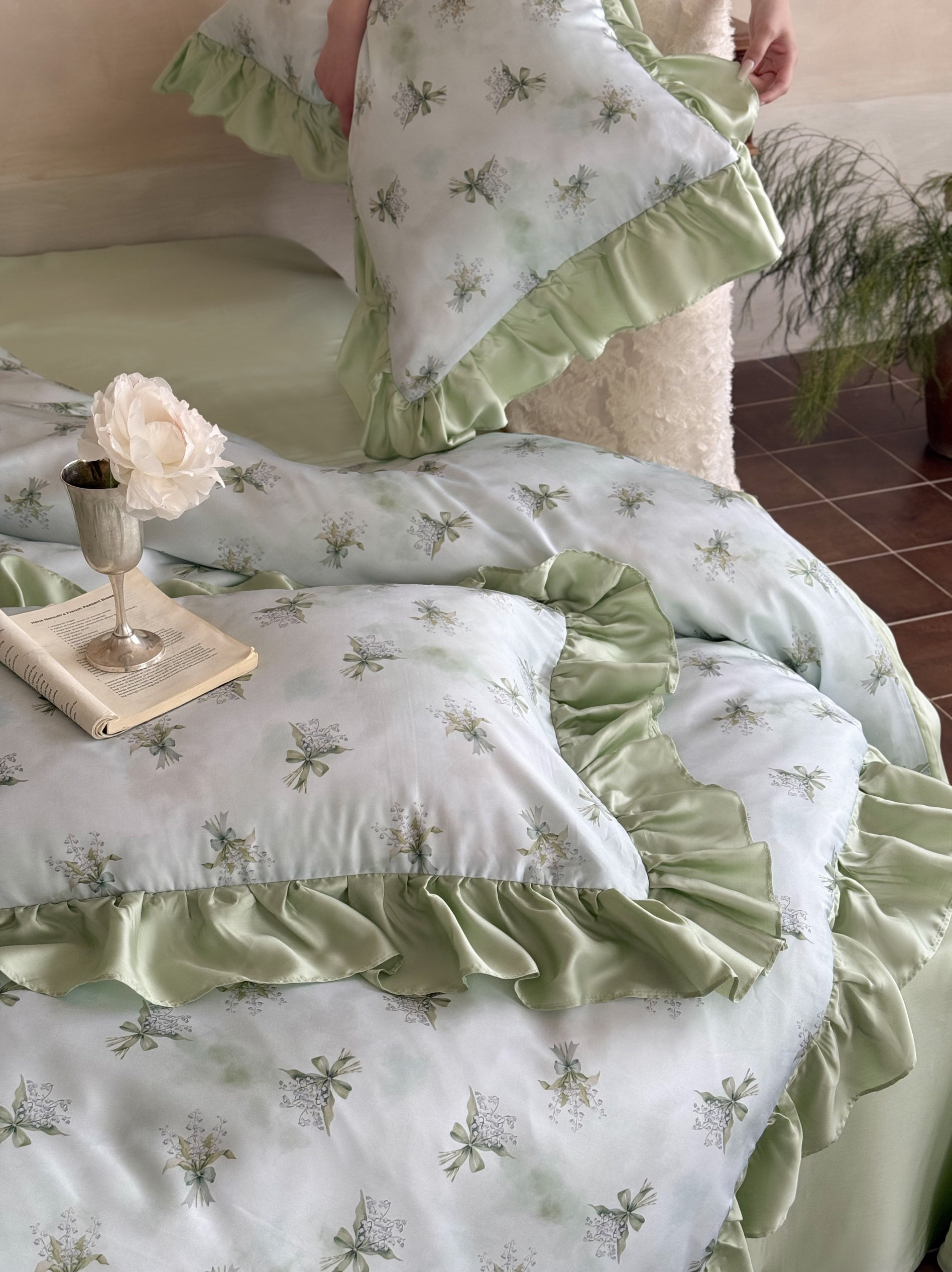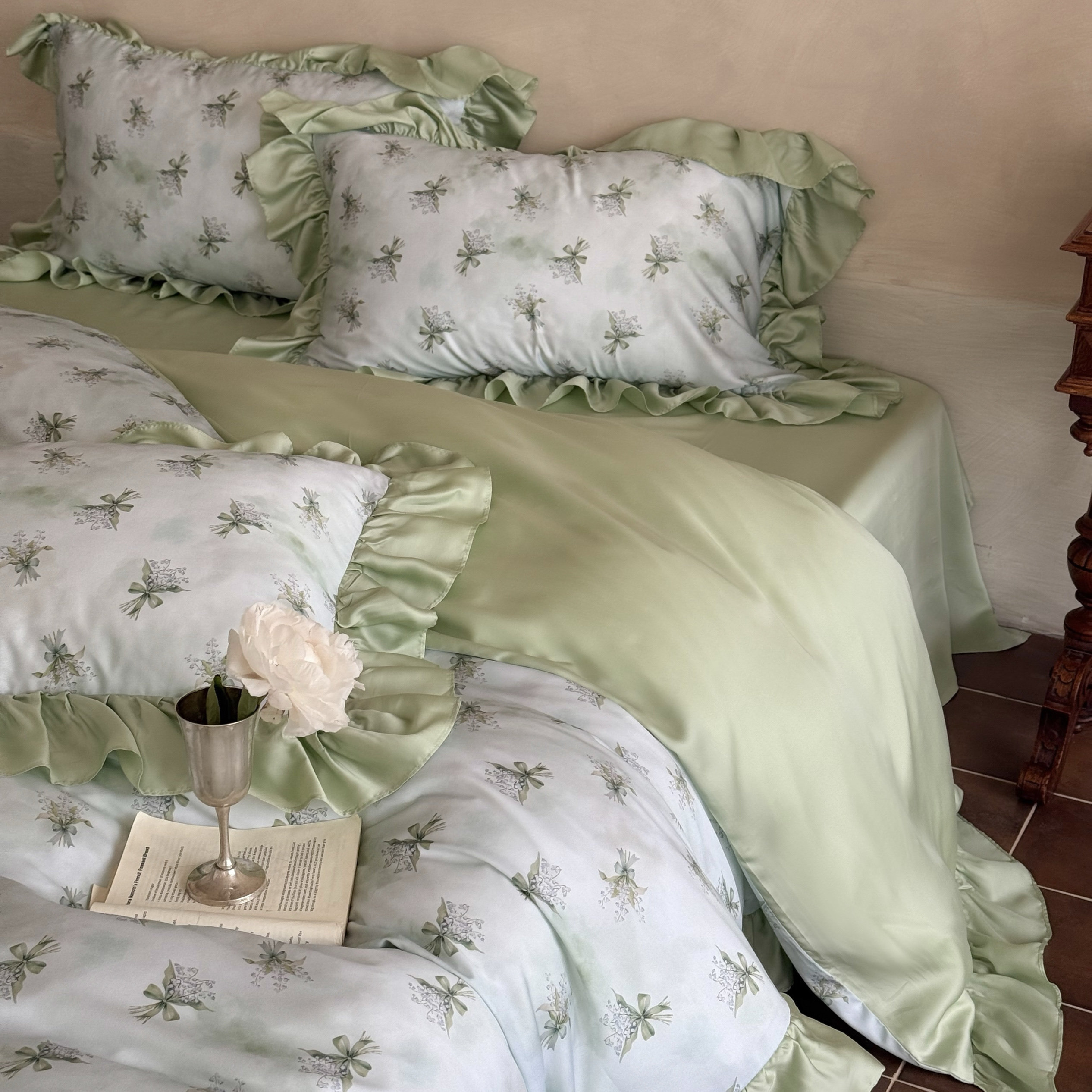 Элитная простыня, шелковистый мягкий комплект, свежий пододеяльник, 4 предмета, французский стиль, постельные принадлежности