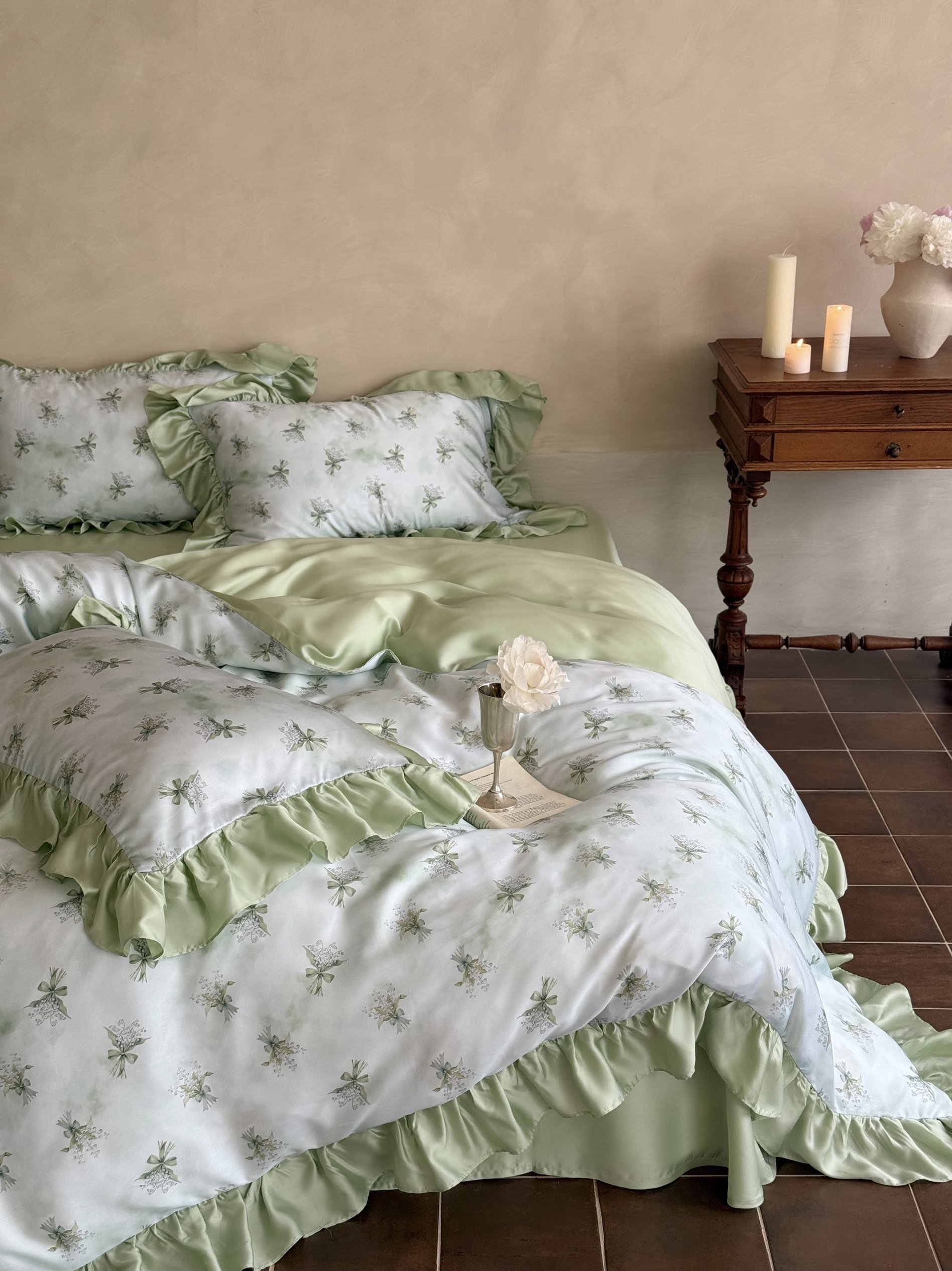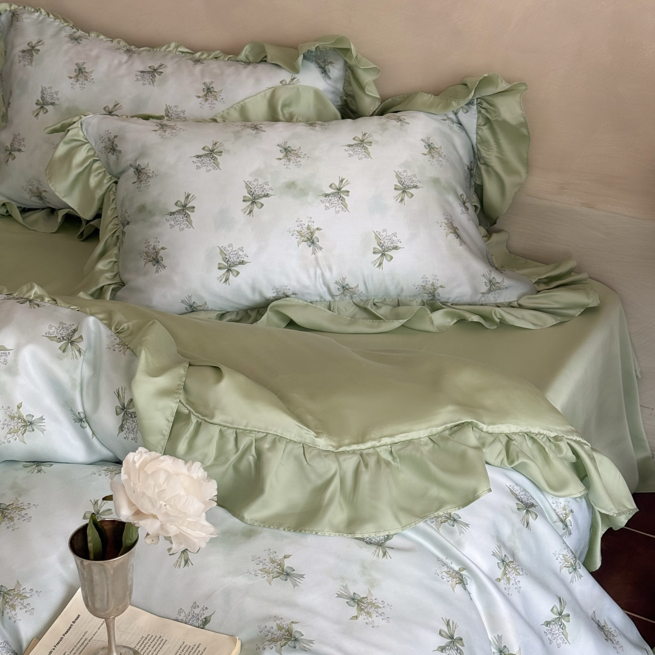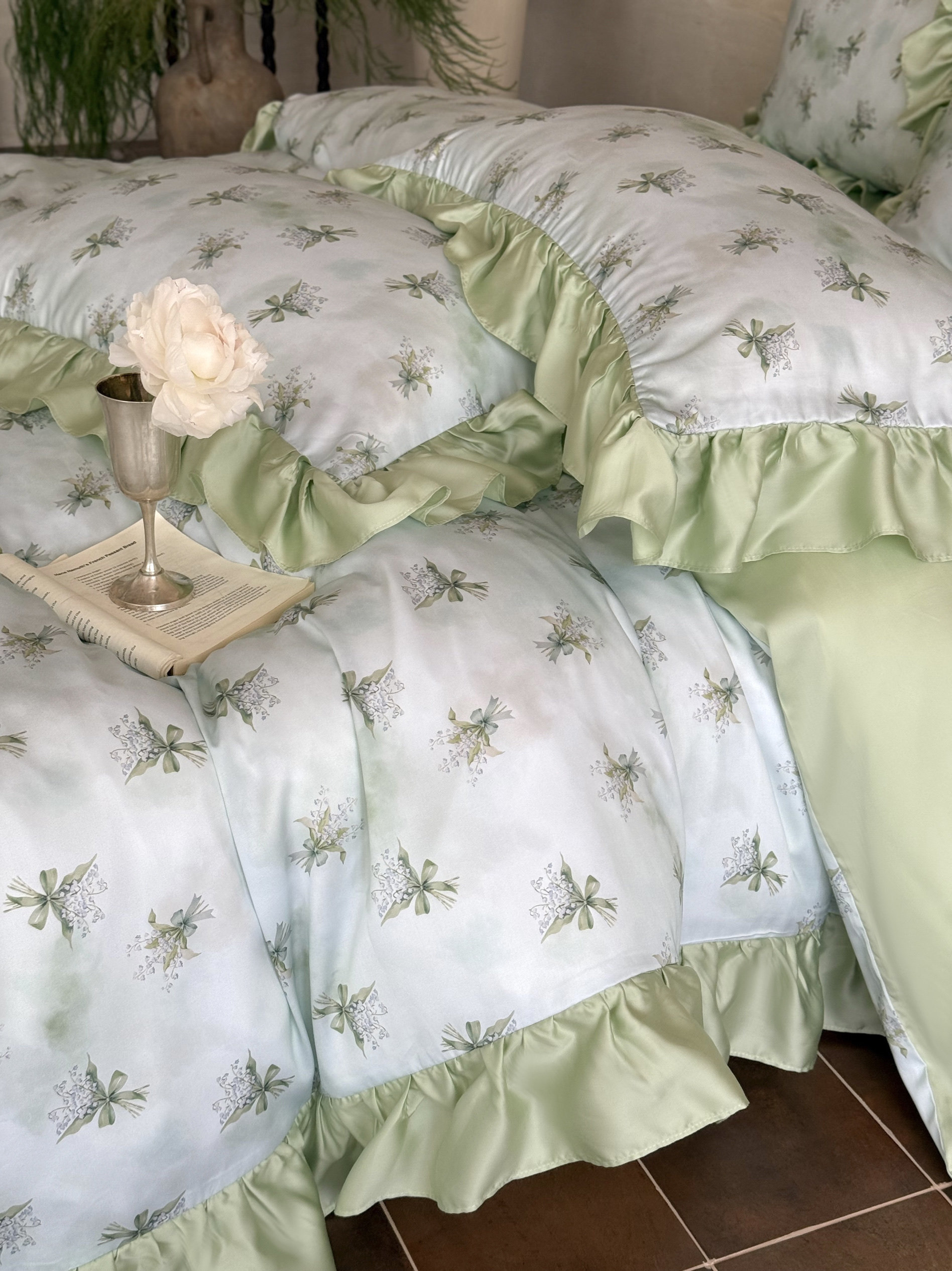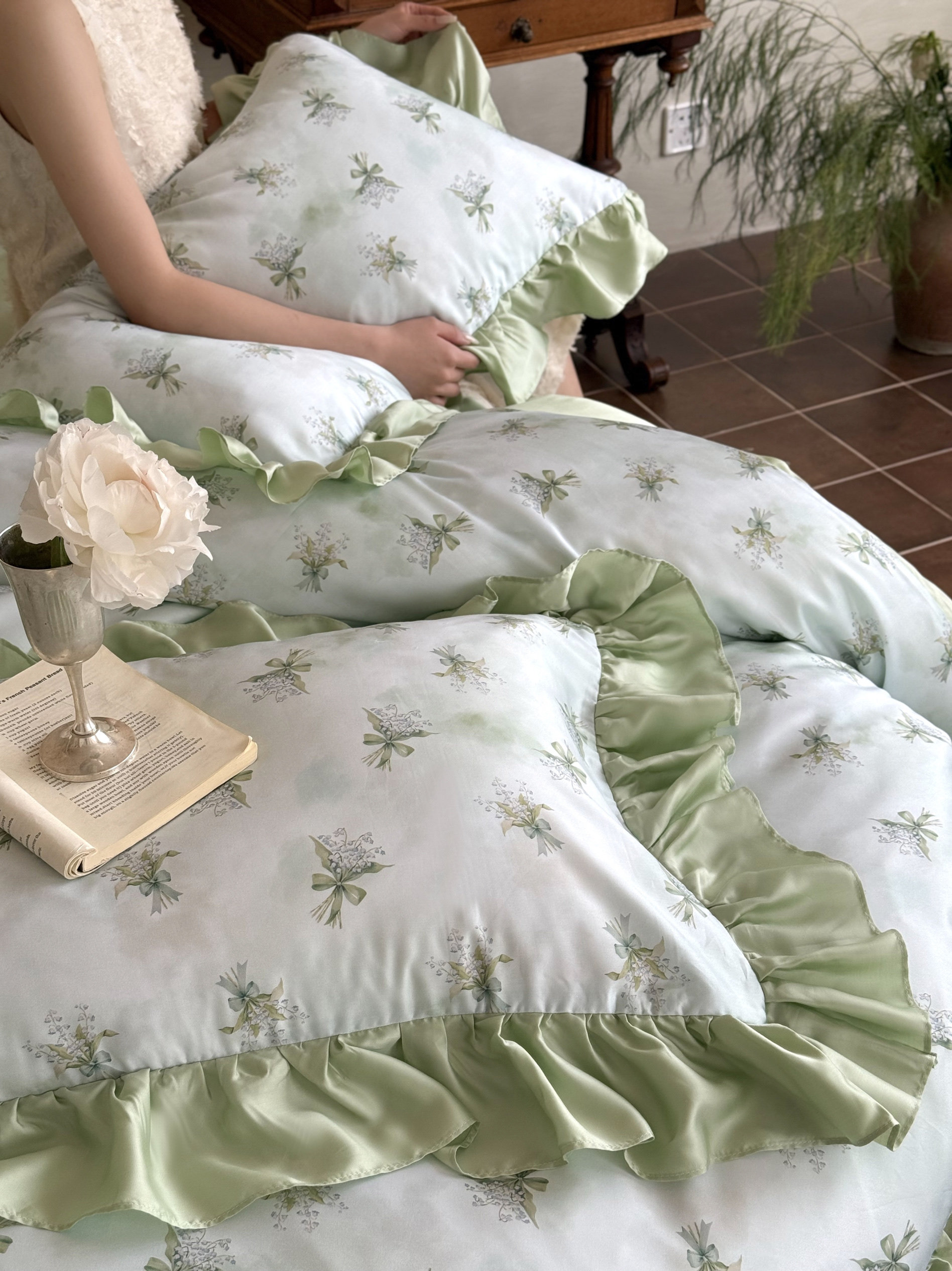Элитная простыня, шелковистый мягкий комплект, свежий пододеяльник, 4 предмета, французский стиль, постельные принадлежности