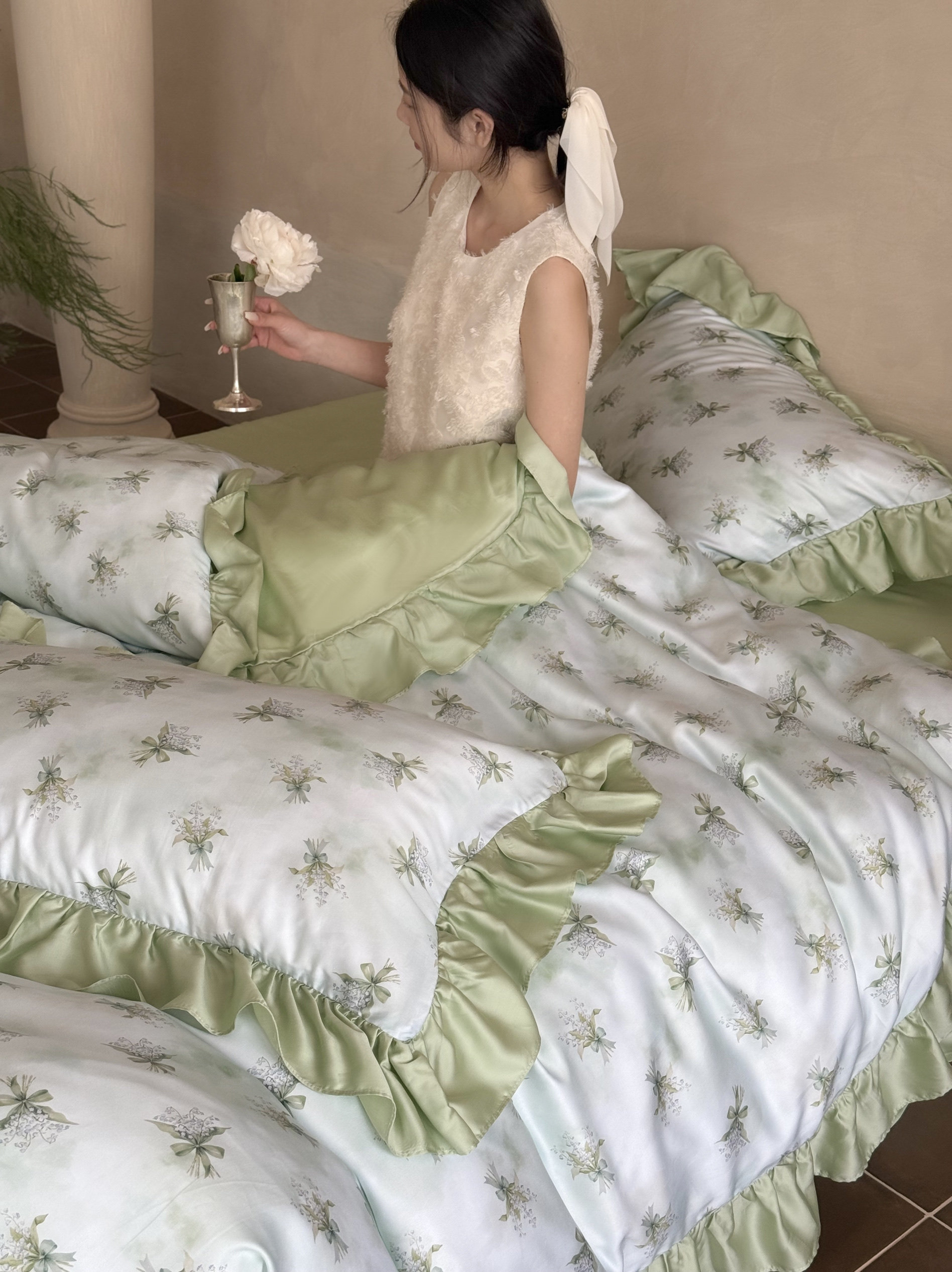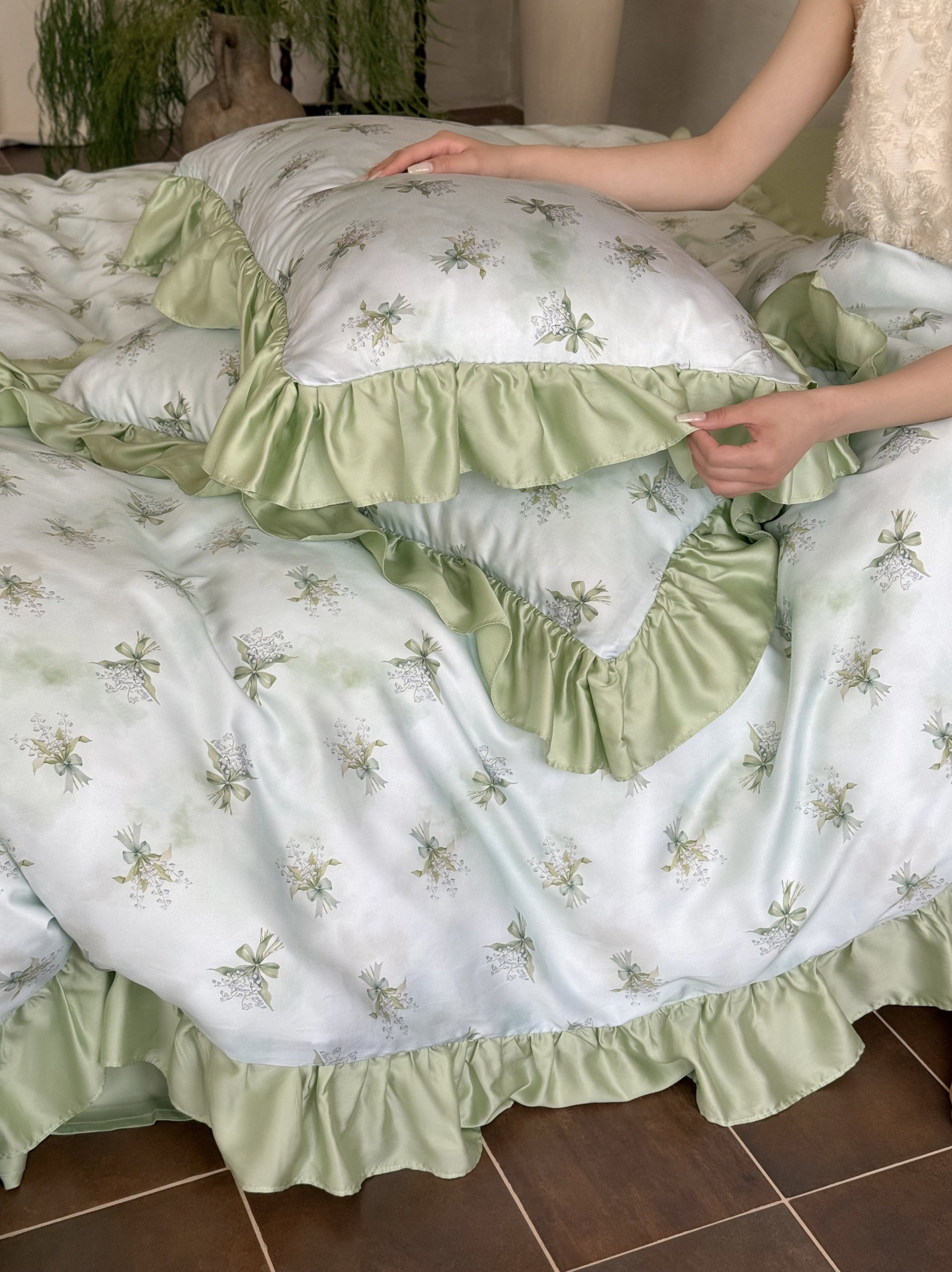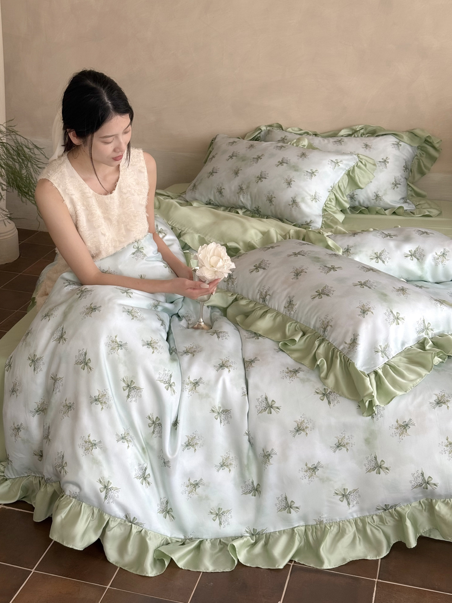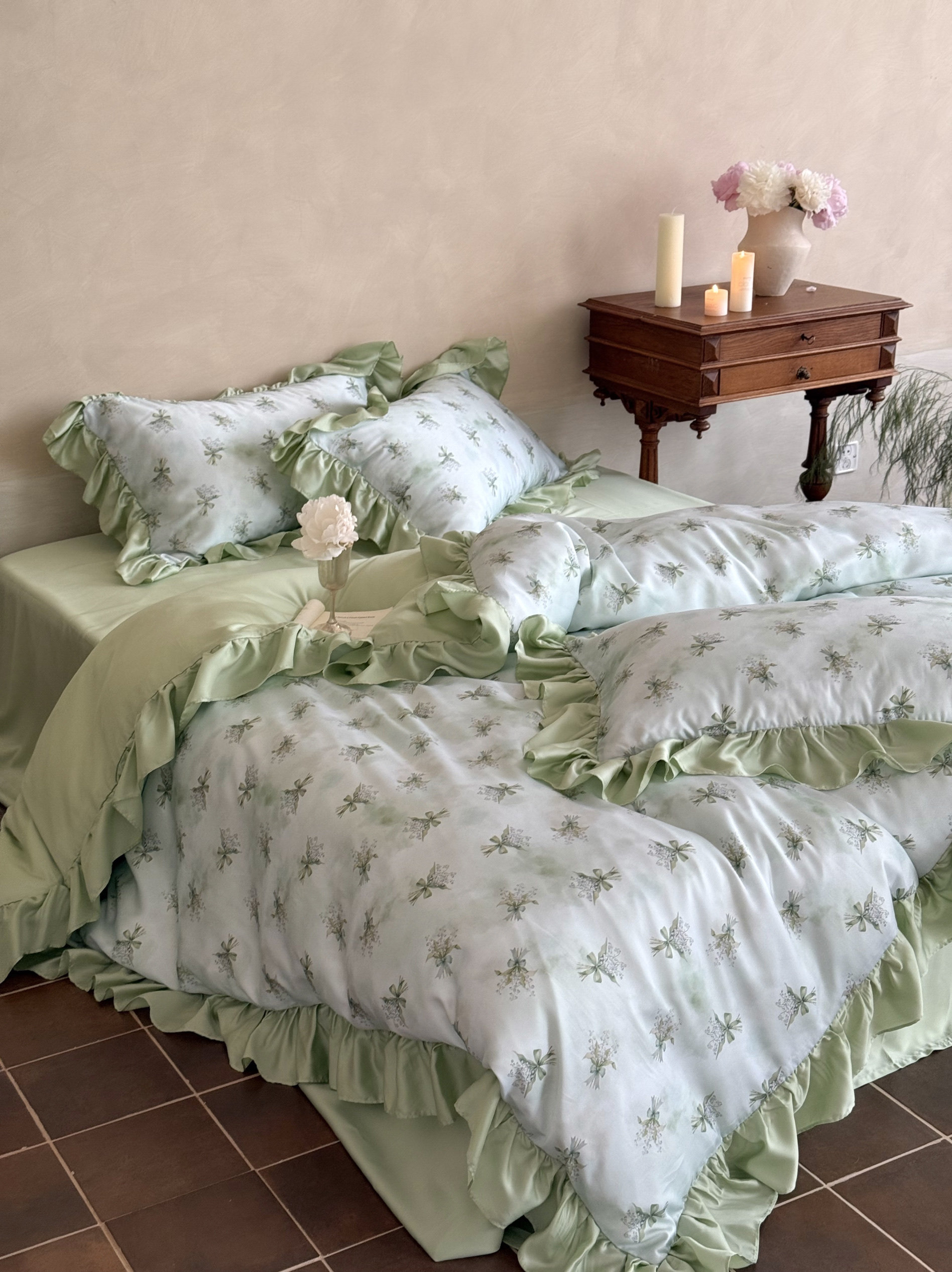 Элитная простыня, шелковистый мягкий комплект, свежий пододеяльник, 4 предмета, французский стиль, постельные принадлежности