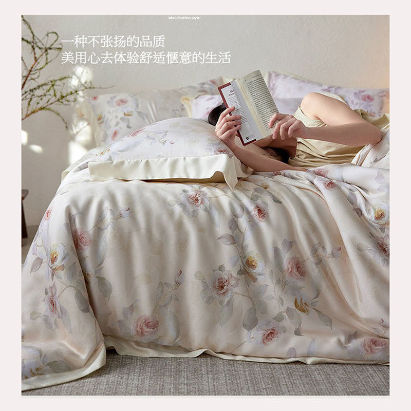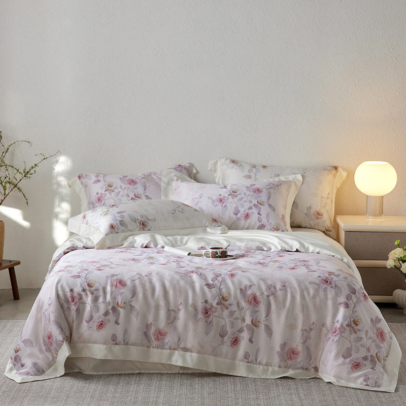 Комплект, летняя шелковистая свежая простыня, 4 предмета, постельные принадлежности