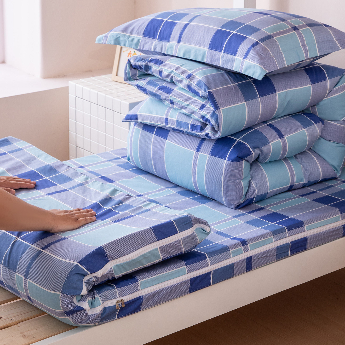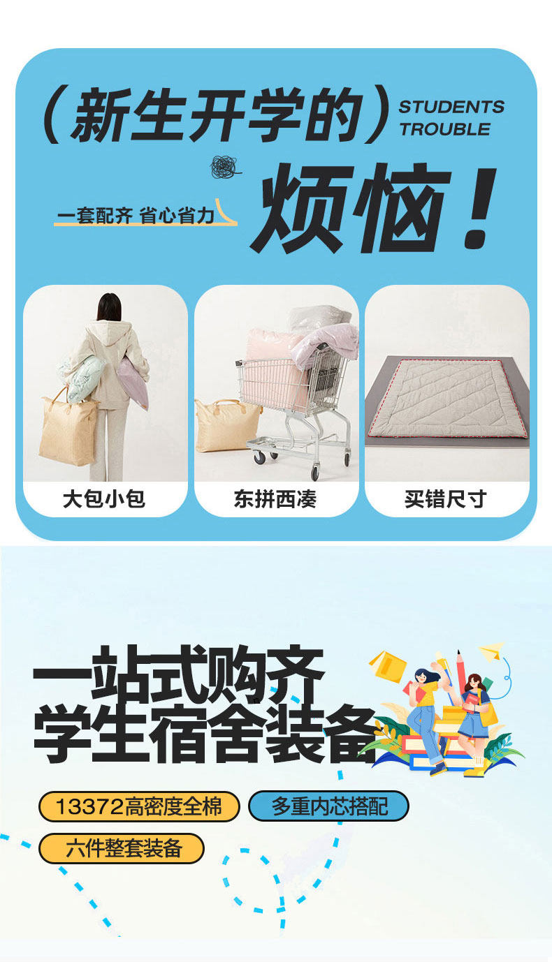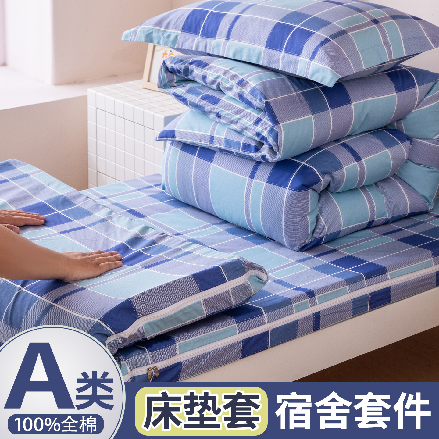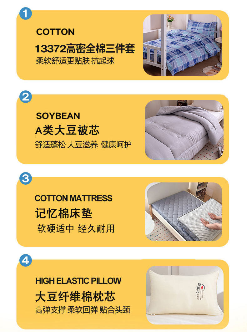Хлопковый комплект для школьников и студентов, хлопковое одеяло, пододеяльник, простыня, матрас, подходит для студента, 3 предмета