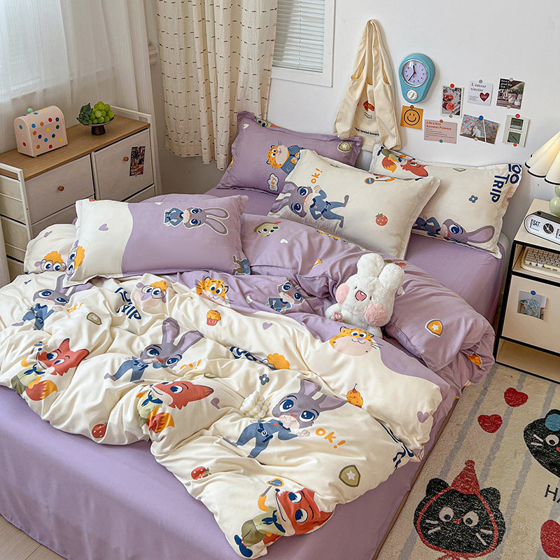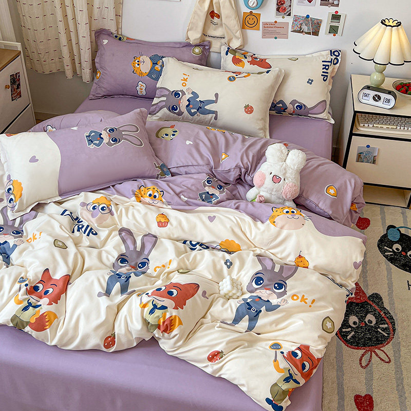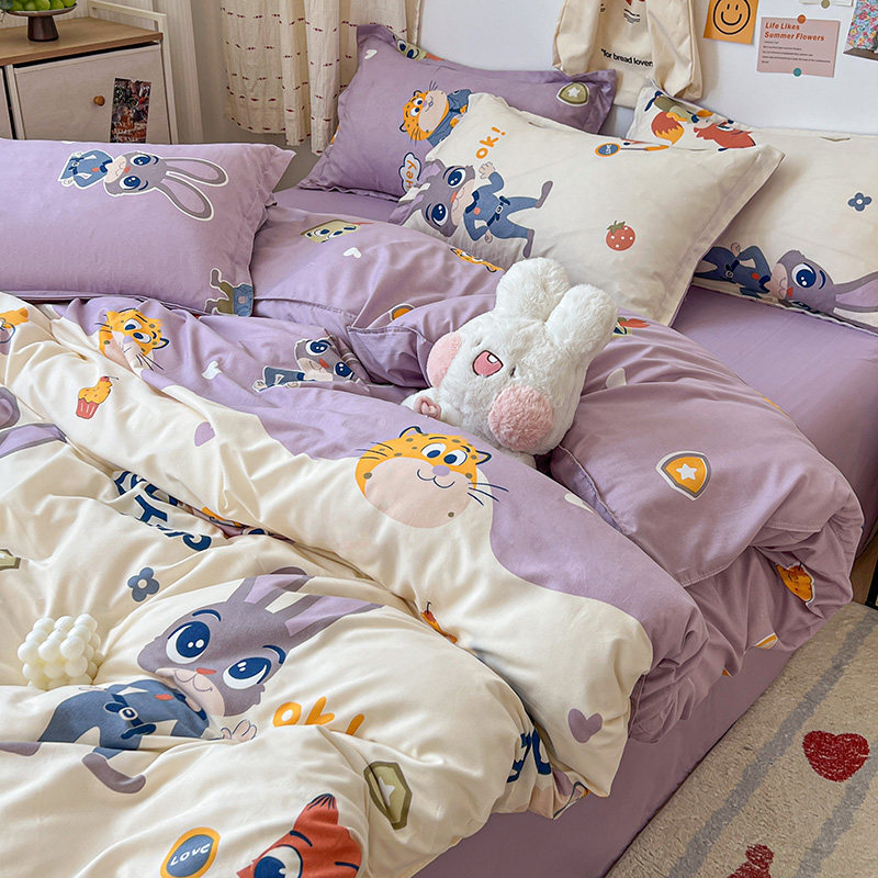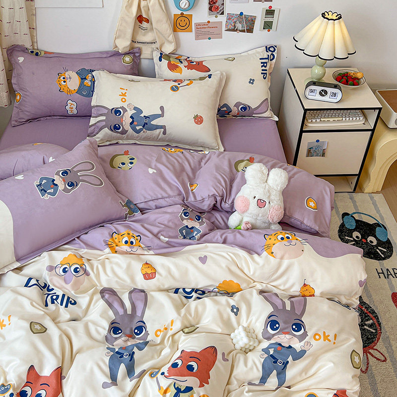 Мультяшный детский милый кролик с животными, пододеяльник, простыня, комплект для школьников и студентов, офицер полиции, 4 предмета, 3 предмета