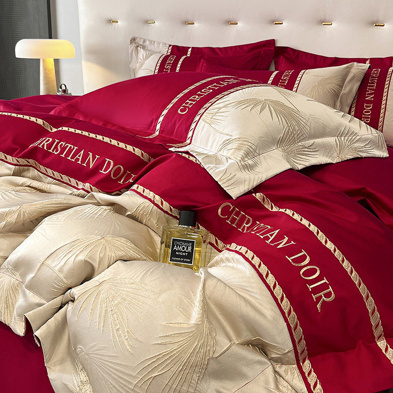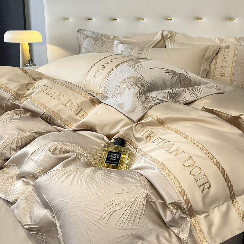 Хлопковый комплект, простыня, мягкий пододеяльник, изысканный стиль, 4 предмета, легкий роскошный стиль, с вышивкой, постельные принадлежности