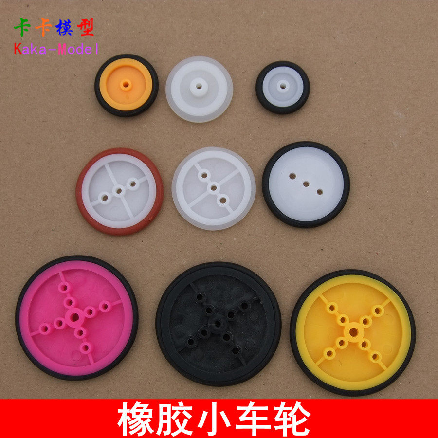 Желтые колеса из 2 мм резинового кольца, диаметр среднего отверстия составляет 2 мм и могут быть соединены с 2 -миллиметровым двигателем.