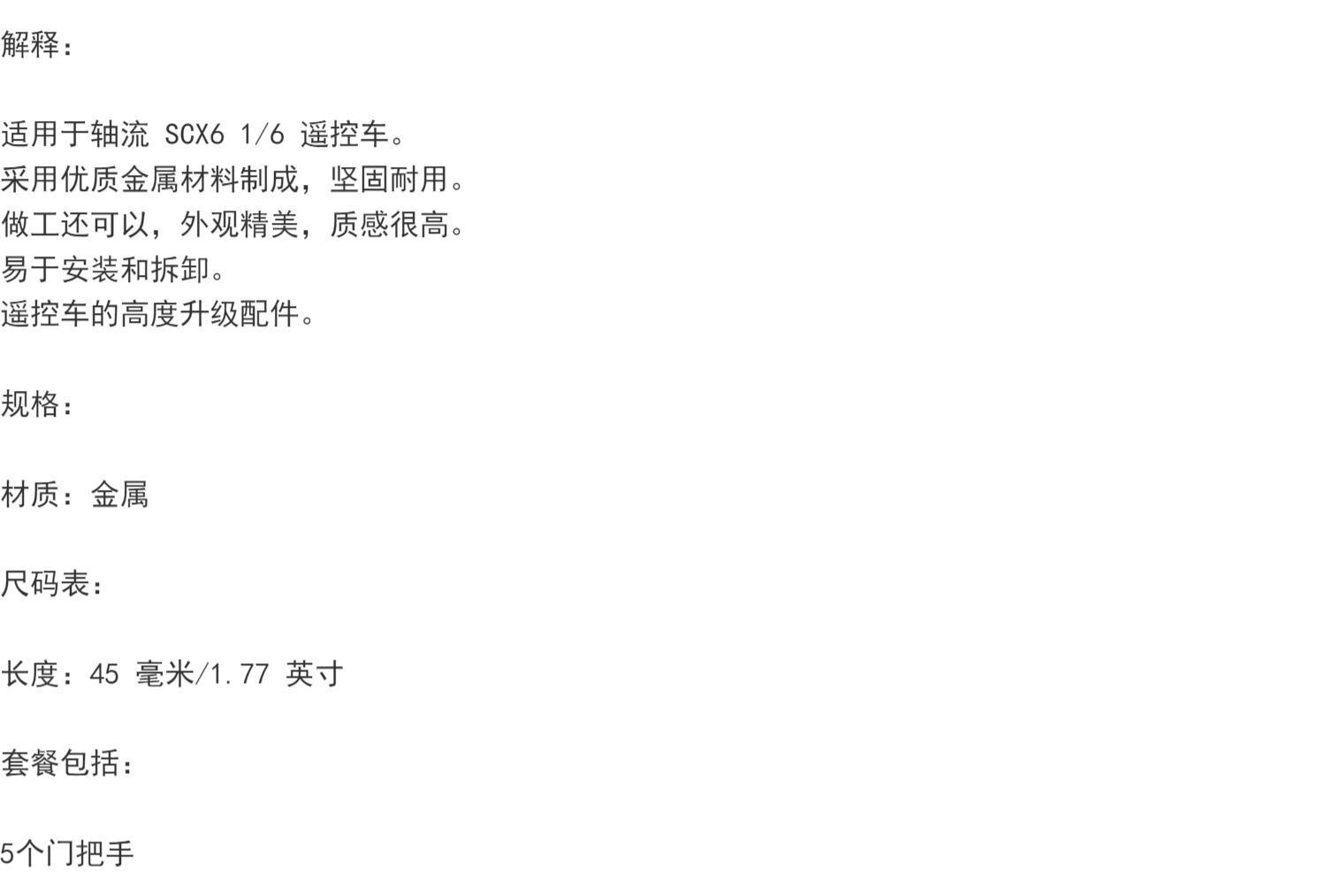 SCX6 Дверная ручка 45 мм осевой SCX6 1/6 RC CAR DIY Замените металлический обновление металл