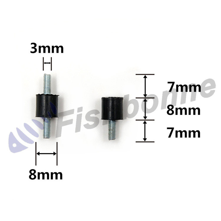Одно вогнутое и одно выпуклое: 8 мм x 8 мм, охватываемая головка имеет резьбу М3 длиной 8 мм, вогнутое отверстие имеет резьбу М3, а середина имеет длину 8 мм и диаметр 8 мм из амортизирующей резины.