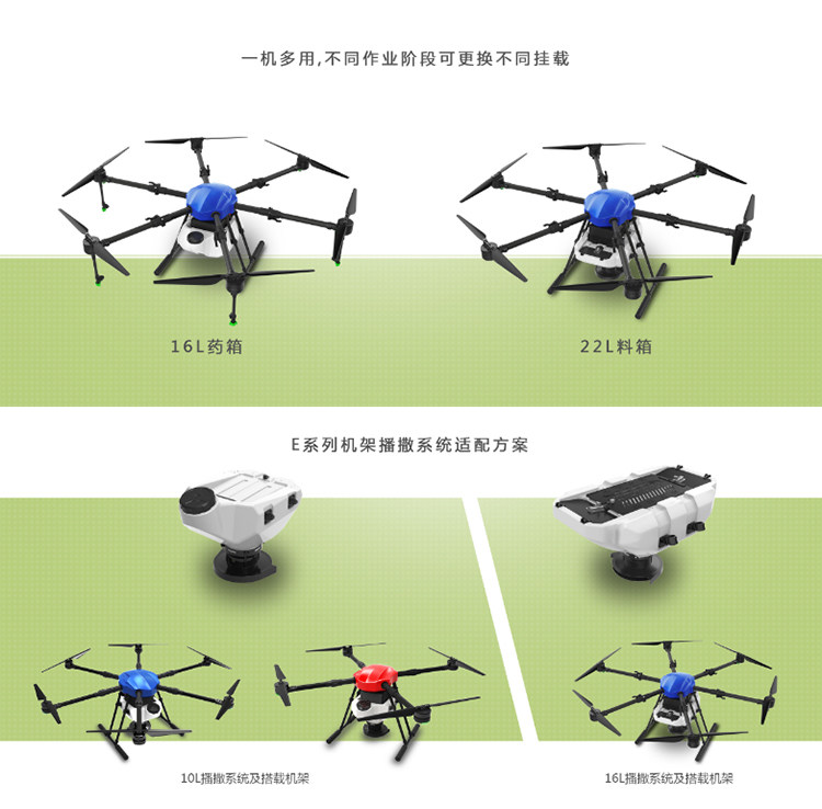 EFT Модель сельскохозяйственного распылителя, дрон, защита растений, многороторный самолет E616, система разбрасывания, 22 л, гранулированный корм для рыб