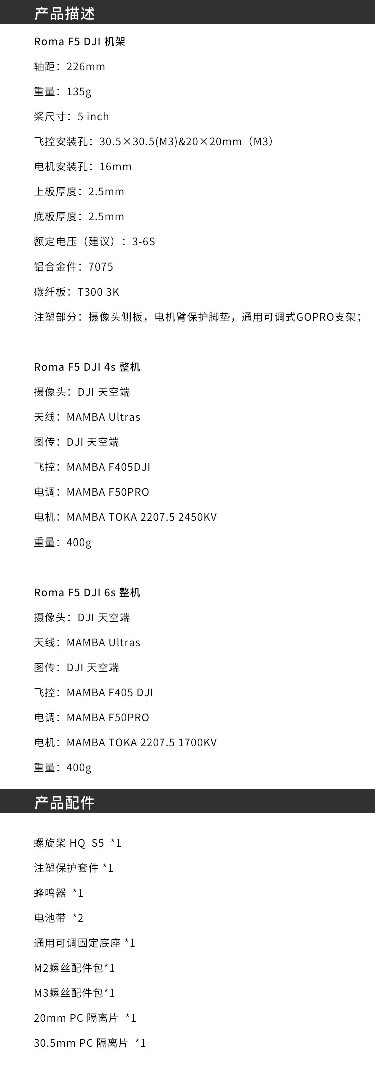 大通 Mamba 5 -INCH ROMA F5 Целая машина поддерживает DJI DJI HD MAP Transmission Sky End 4S/6S Power Kit