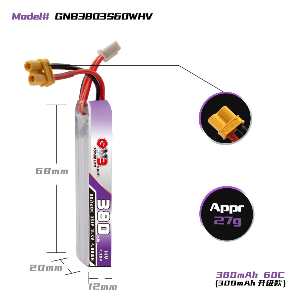 Gaoneng High Energy 380mah 3S 11.4V 60C Дистанционное управление четырехмосные дрон Lihv литиевый батарея