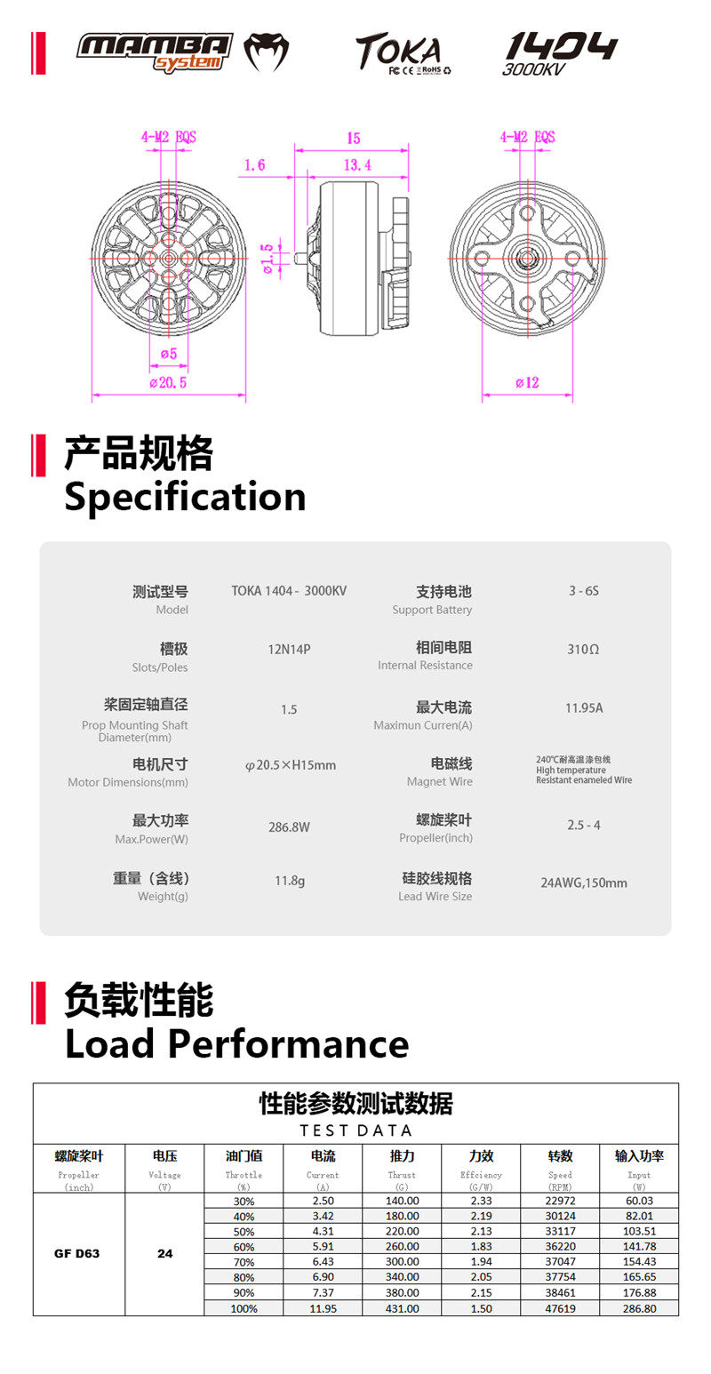 Оцененное напряжение: 3S ~ 6S (12,6 В ~ 25,2 В)