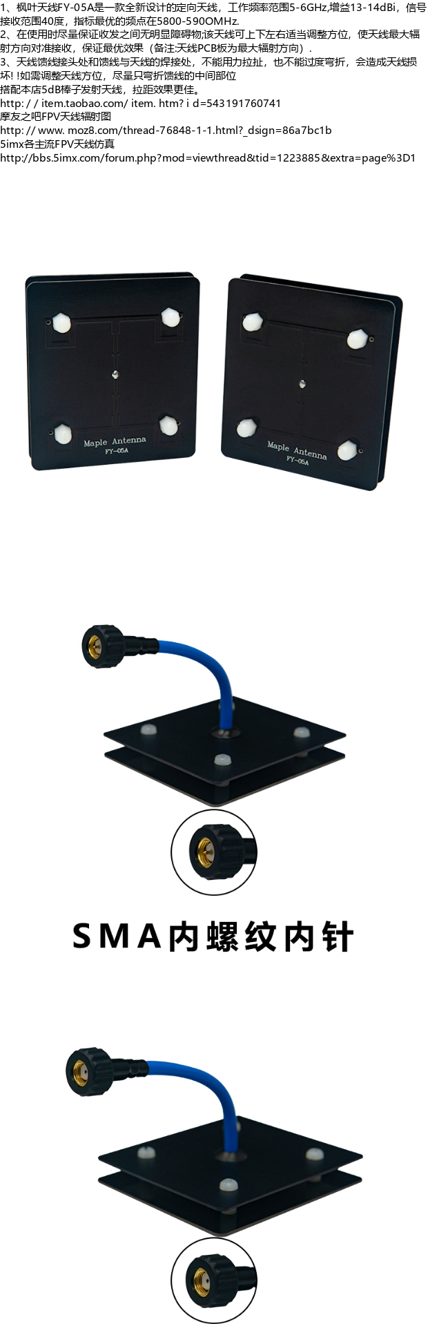 枫叶 Антенна 5,8 г, плоская панель, антенна для передачи изображения, мониторинг, Wi-Fi, фильтр-антенна, 14 дБ SMA, внутреннее отверстие, внутренняя игла