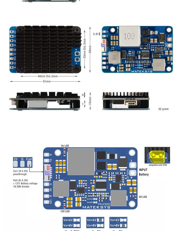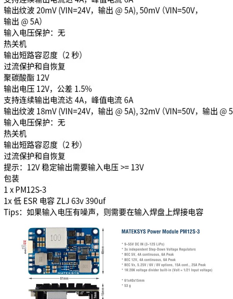 Matek Power Module PM12S-3 Авиационный режим анти-цена напряжения напряжения Диапазон напряжения.