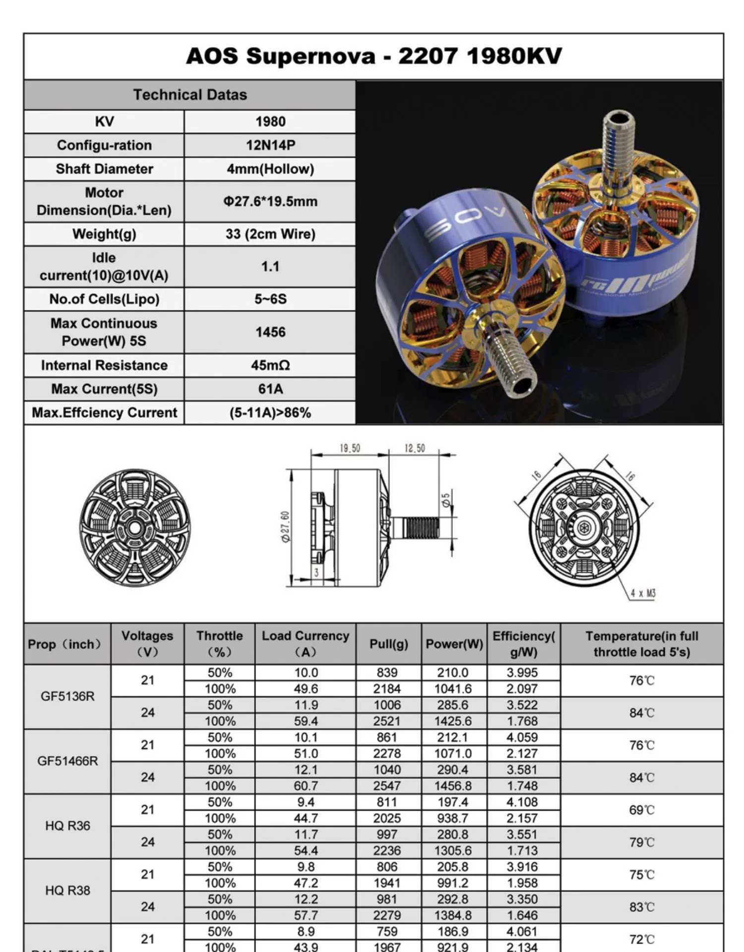 Zhiying Power AOS Co-Brense SuperNova 2207 Новая машина для перекрестной машины двигателя без щетковой мощности FPV Двигатель