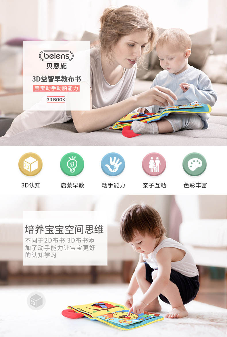 Трехмерная книга из ткани Монтессори, раннее развитие, DIY, можно отрывать, можно грызть