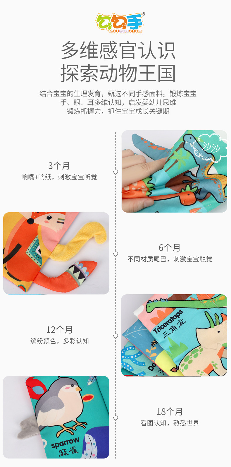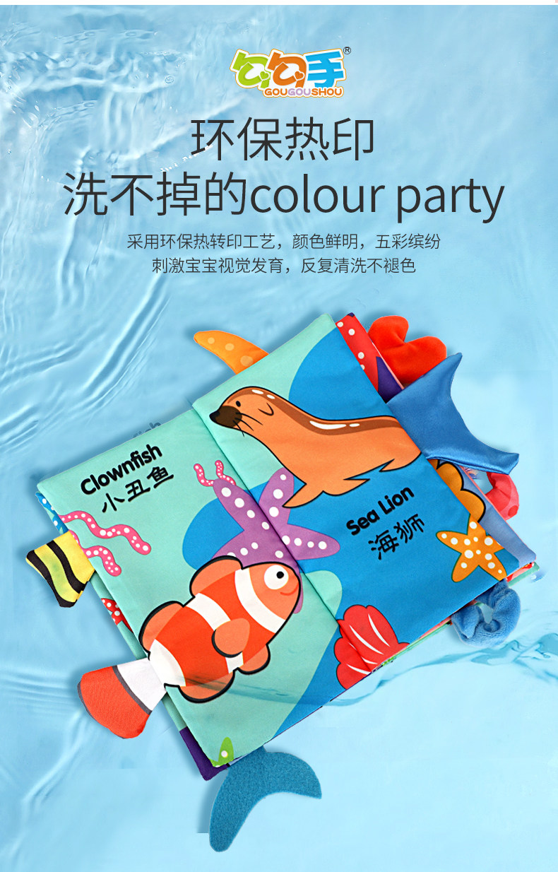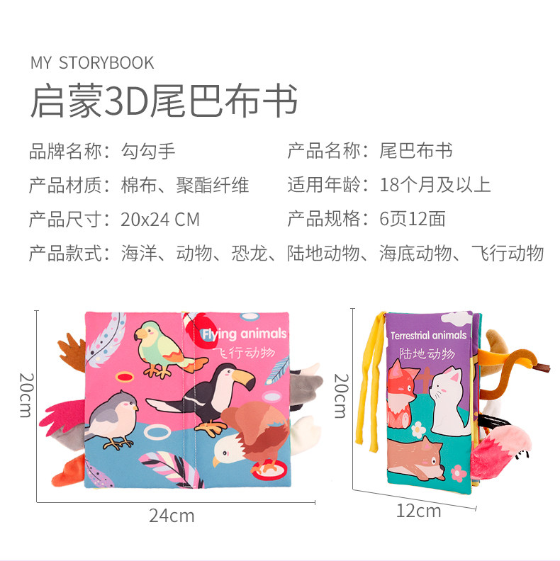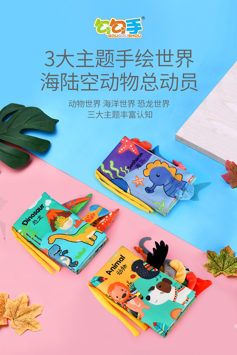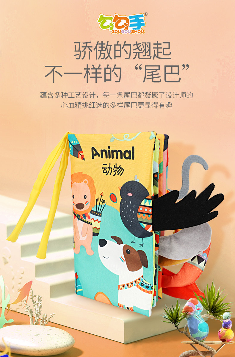 勾勾手 Трехмерная книга из ткани, ручная кукла, интеллектуальная игрушка, можно грызть, можно отрывать, раннее развитие, 6-12 мес.