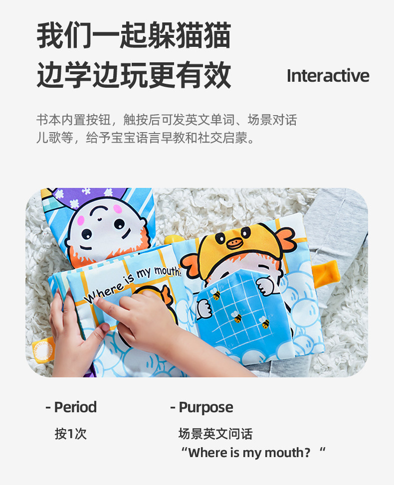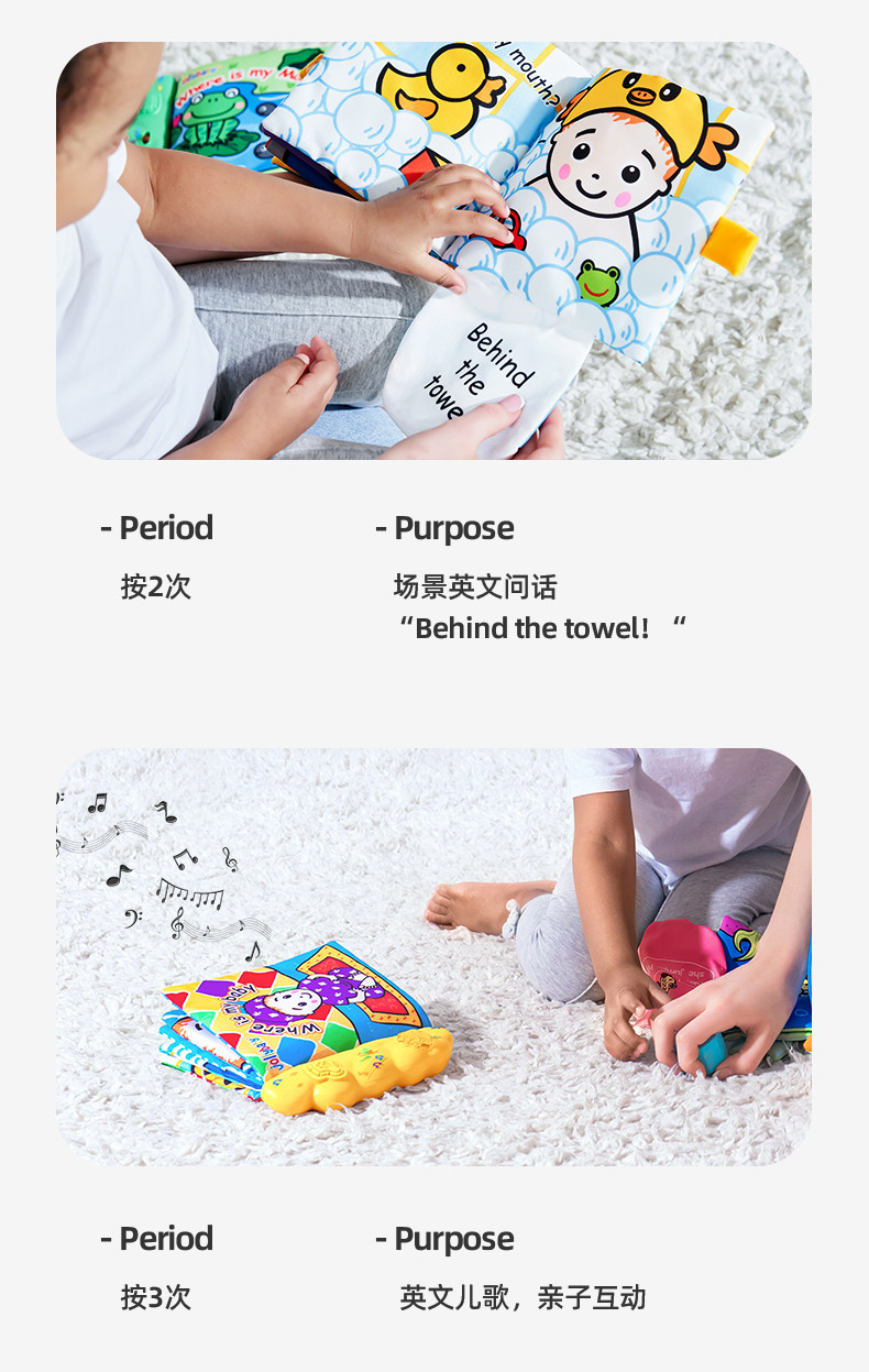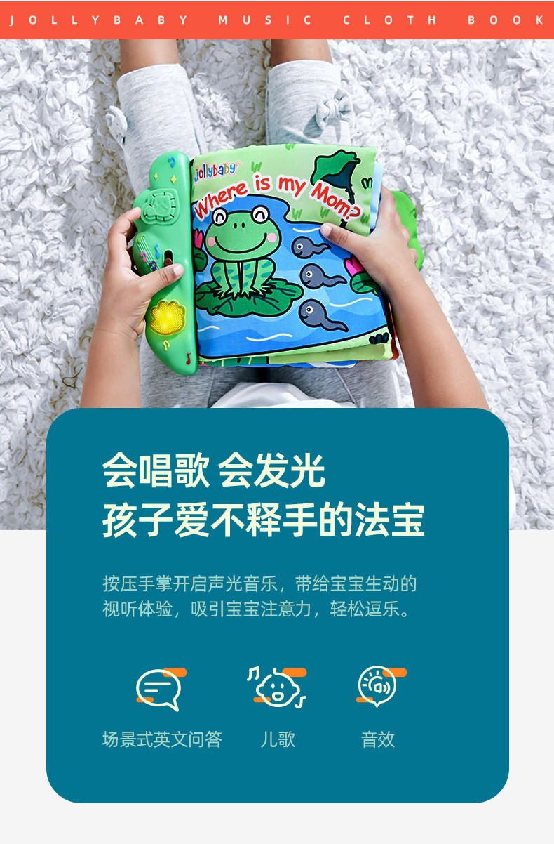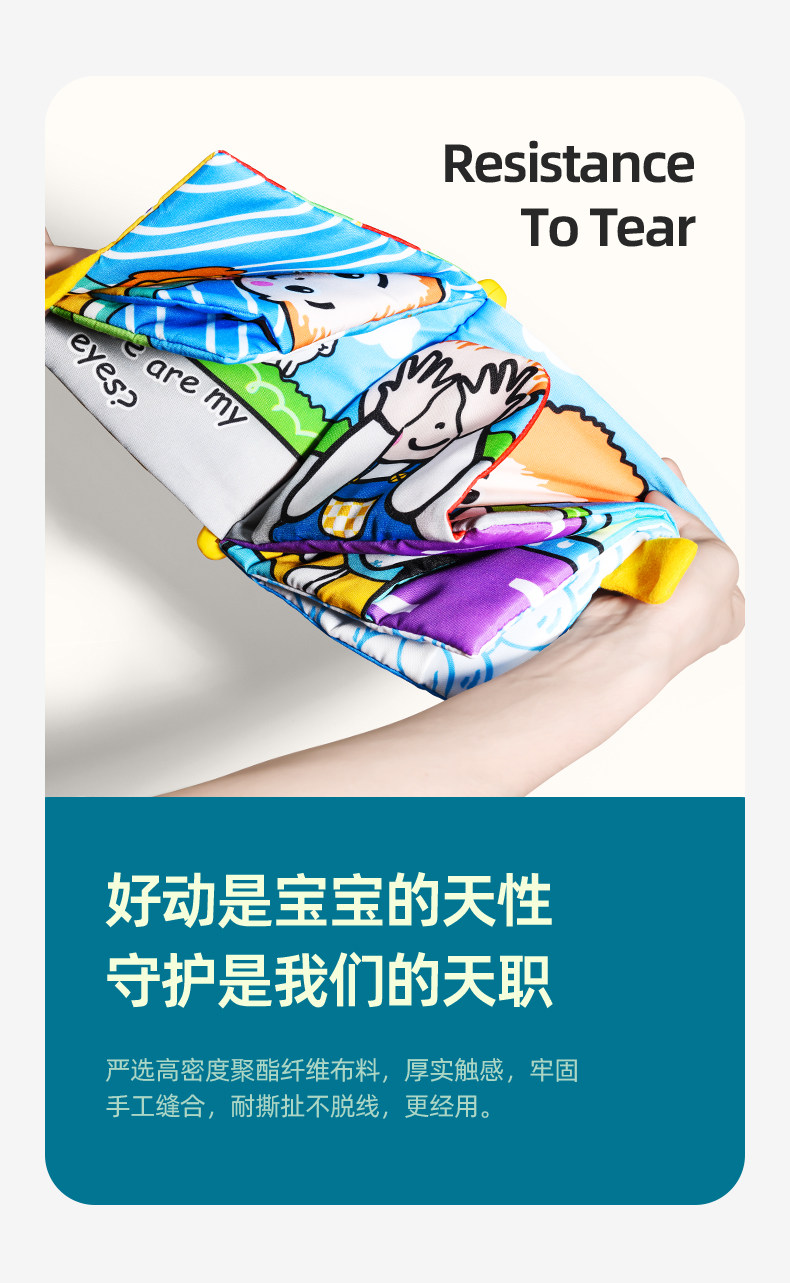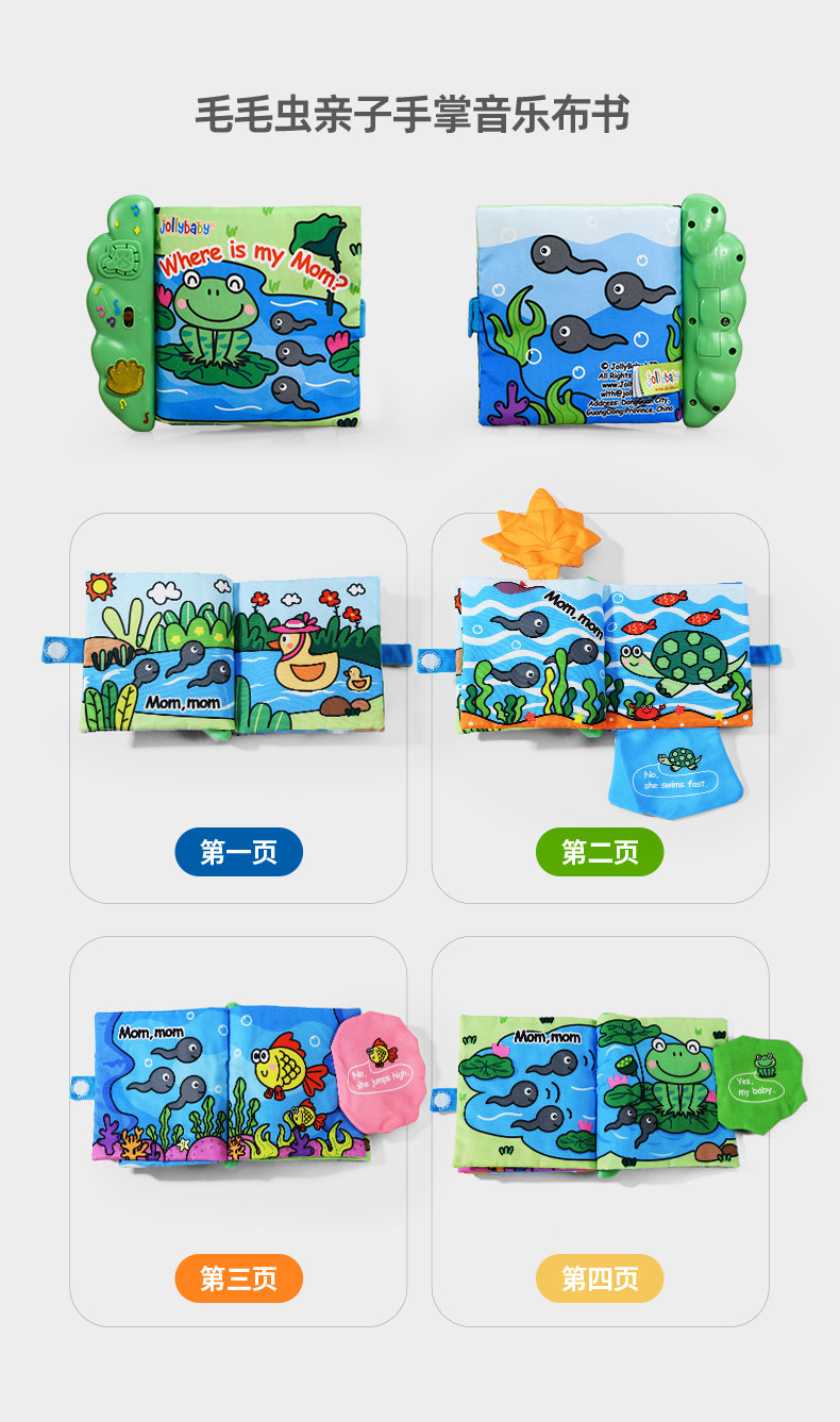 Музыкальная книга из ткани, успокаивающая игрушка, раннее развитие, можно отрывать, можно грызть, обучение, 1 лет