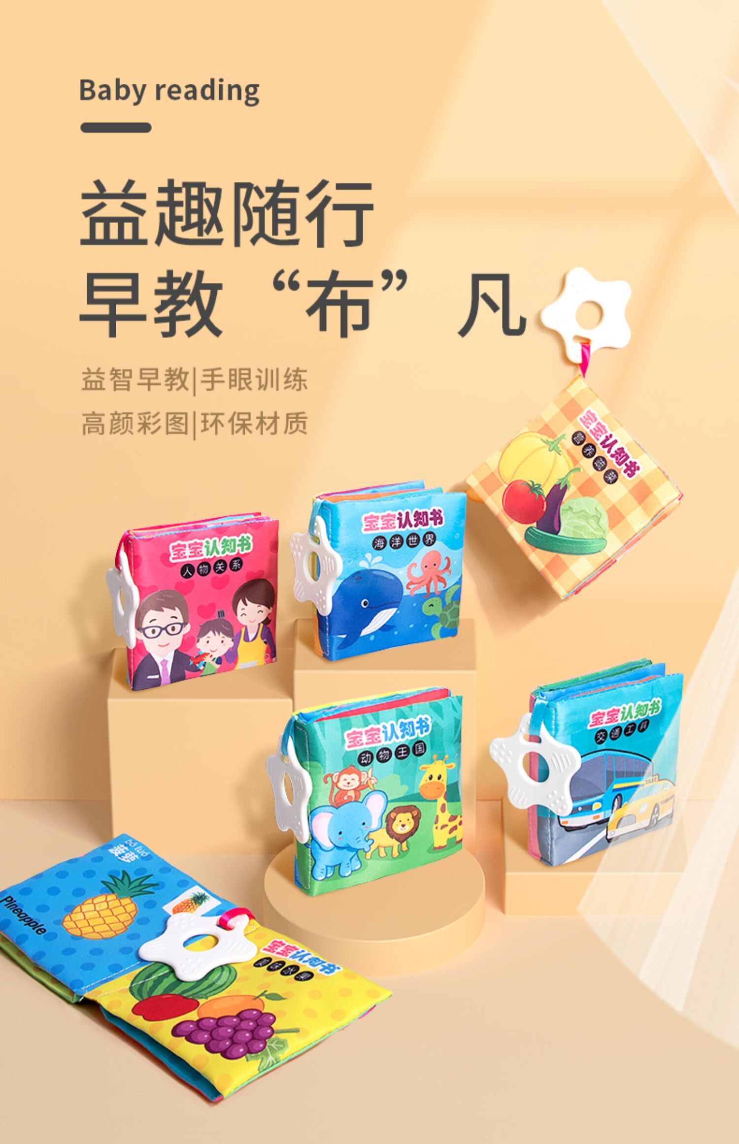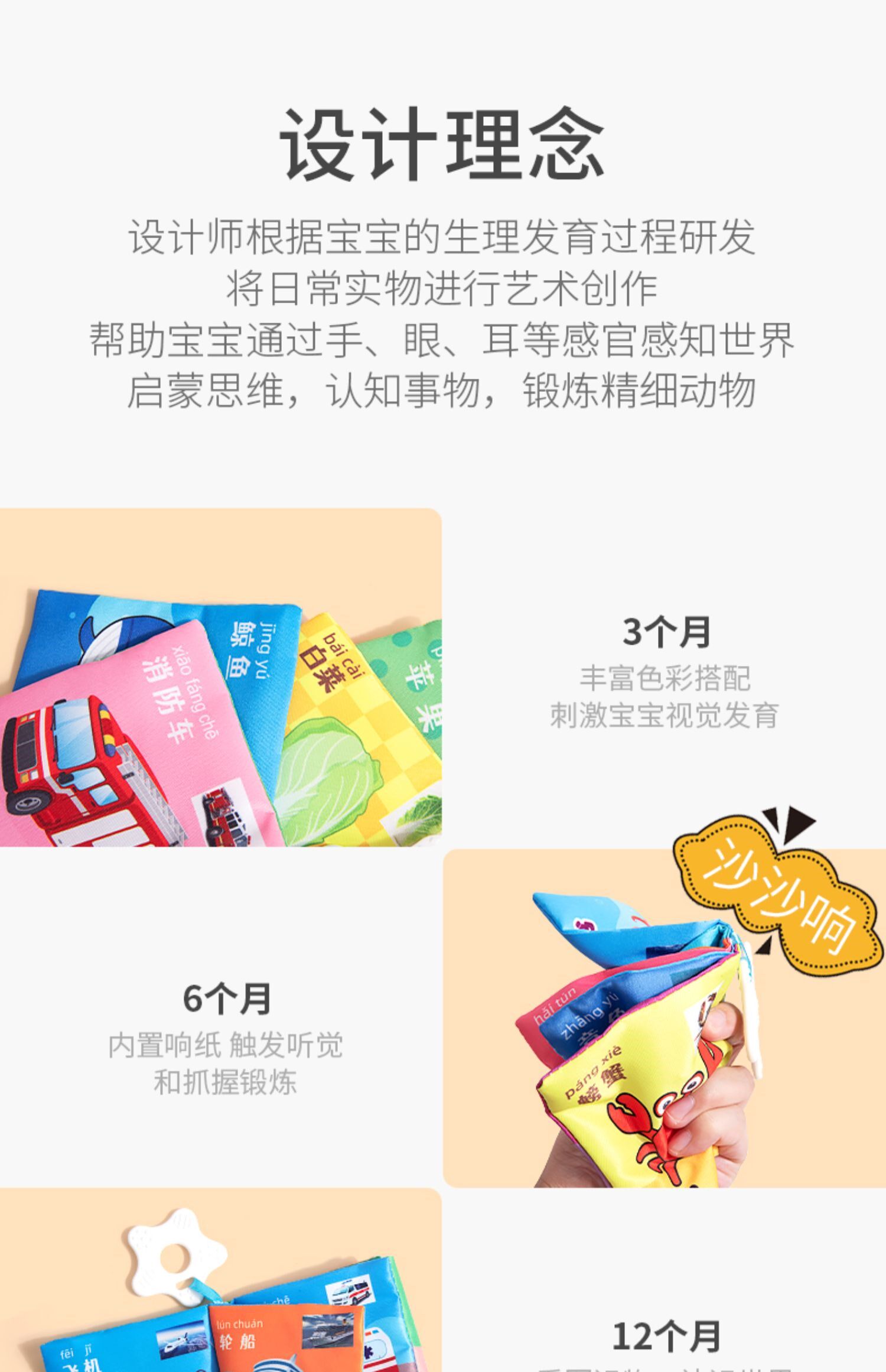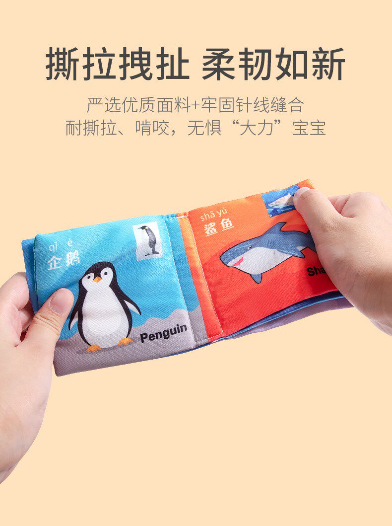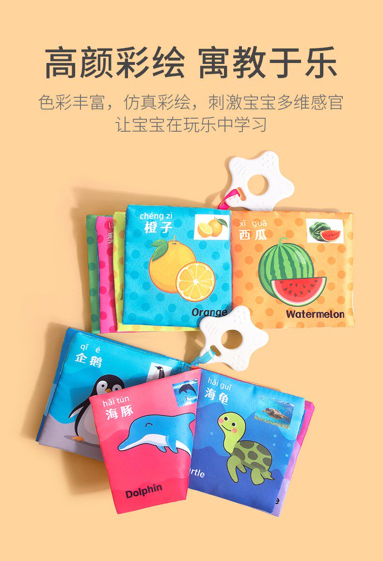 Познавательная трехмерная книга из ткани, интеллектуальная игрушка, можно отрывать, можно грызть, раннее развитие, со звуком, 0-1 лет