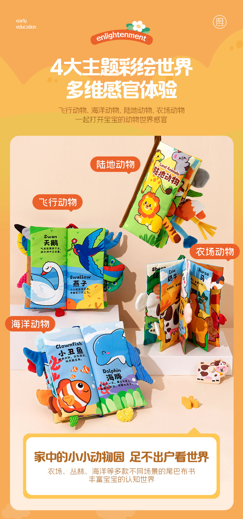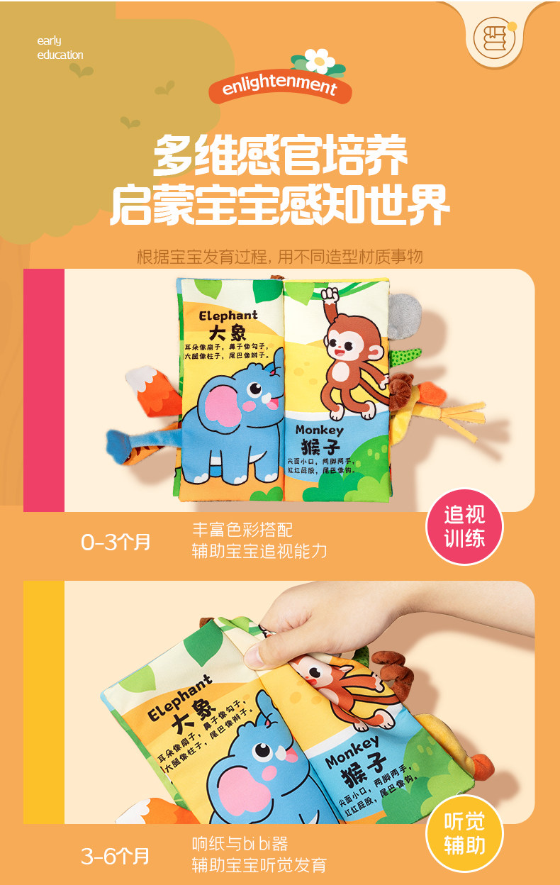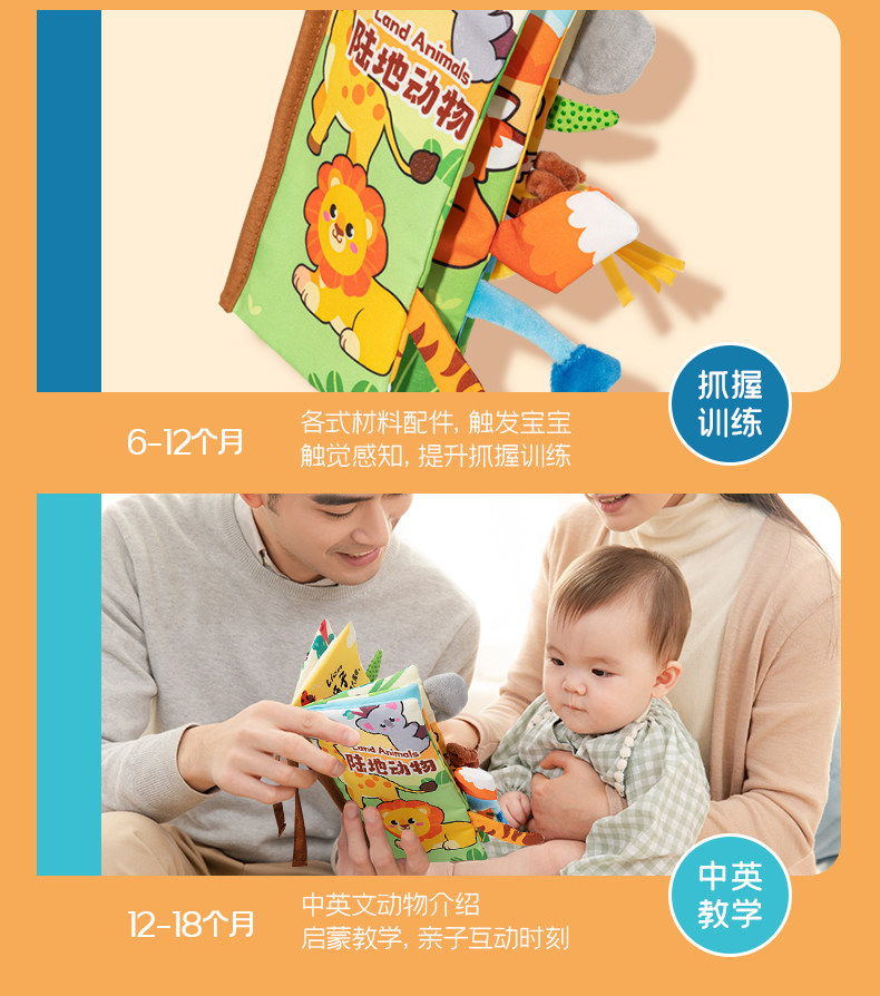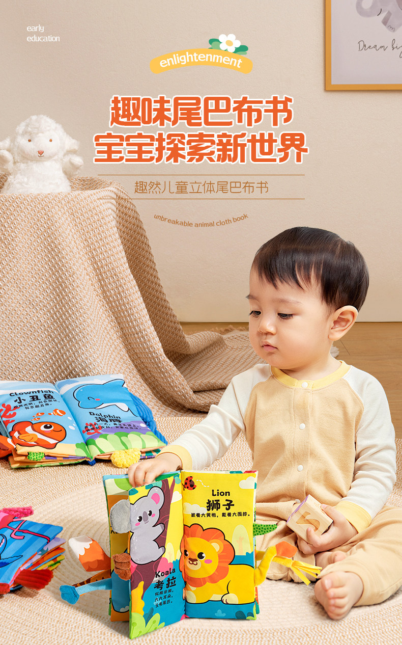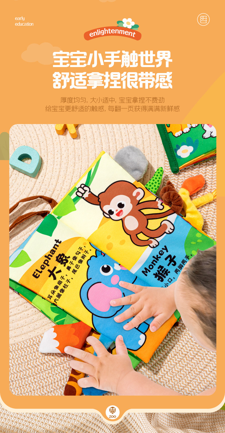 Трехмерная книга из ткани, познавательная интеллектуальная игрушка, раннее развитие, можно отрывать, можно грызть, 6 мес.