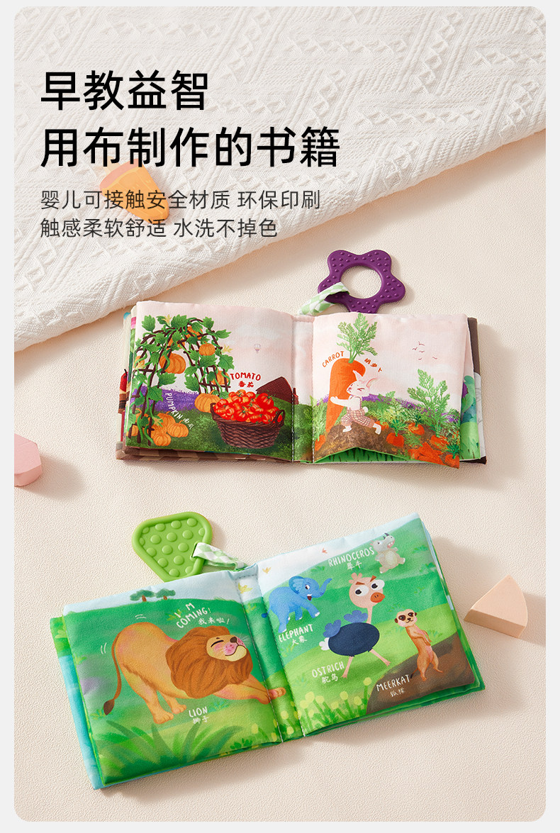 Книга из ткани для младенца, хваталка, игрушка, раннее развитие, обучение, можно отрывать, можно грызть