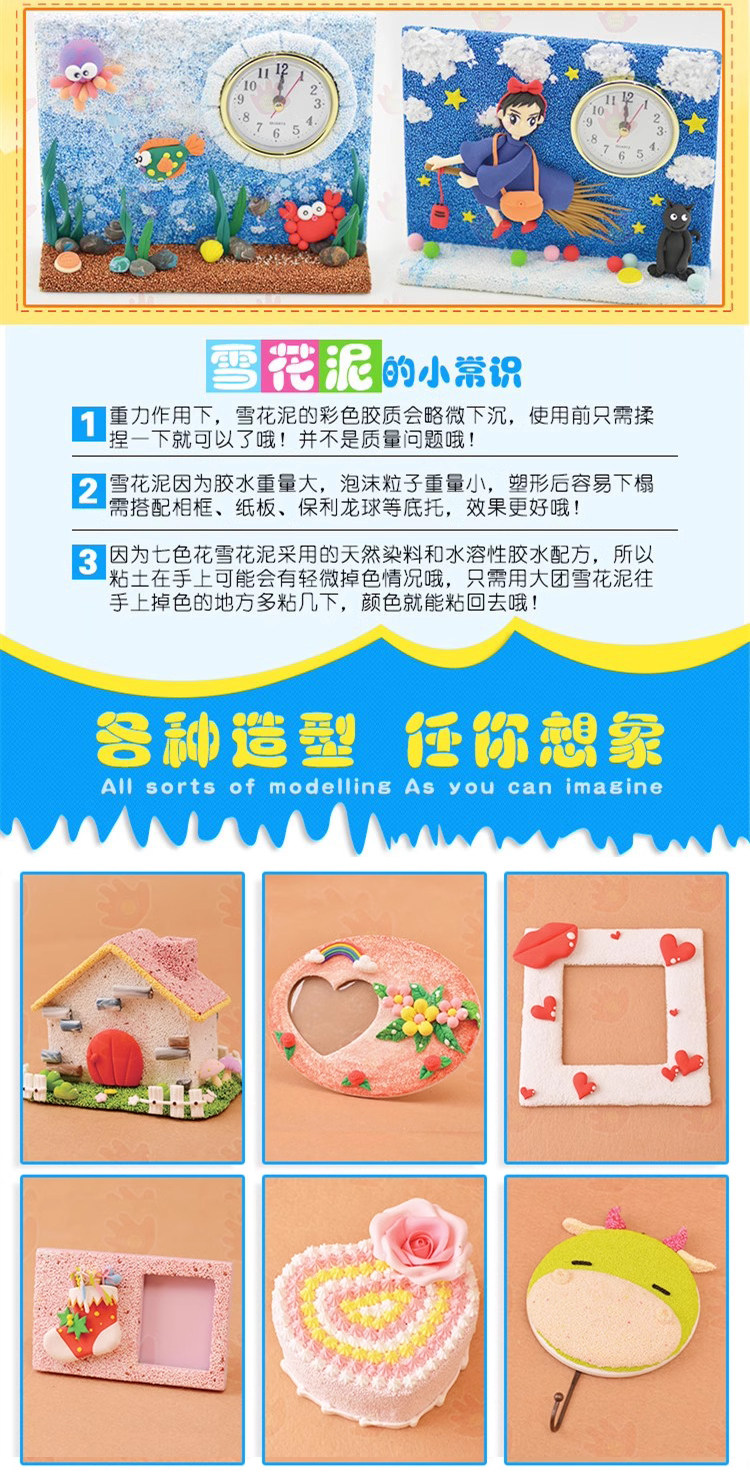 Детский семицветный пластилин для детского сада, DIY, со снежинками, поделки ручной работы