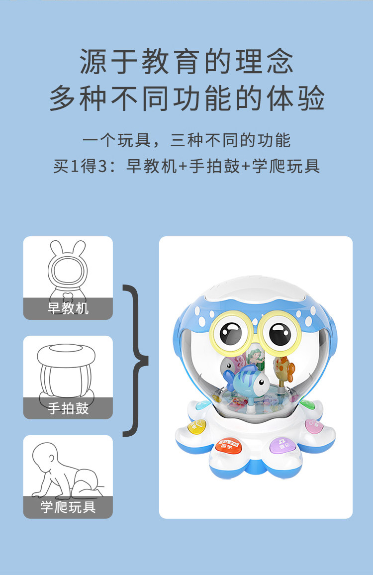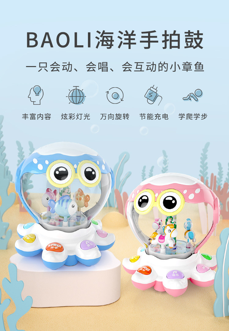 Барабан, музыкальная игрушка, 6-12 мес., раннее развитие, осьминог, 0-1 лет
