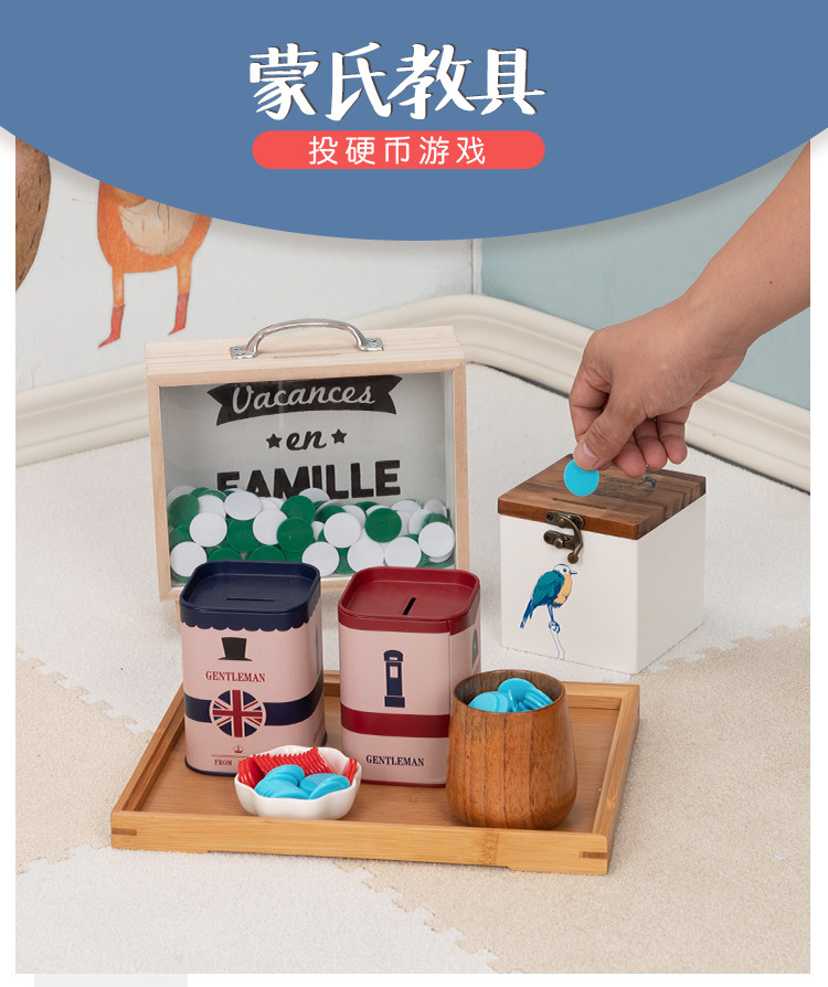 Детские монеты Монтессори для координации рук и глаз, учебные пособия, копилка для детского сада, раннее развитие, цвет, копилка для денег