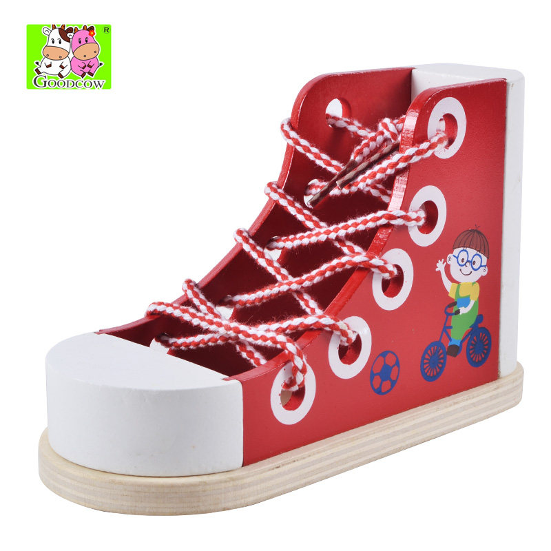 Учебные пособия Монтессори, шнурки, деревянная головоломка для детского сада, детская игрушка для координации рук и глаз, 3 лет