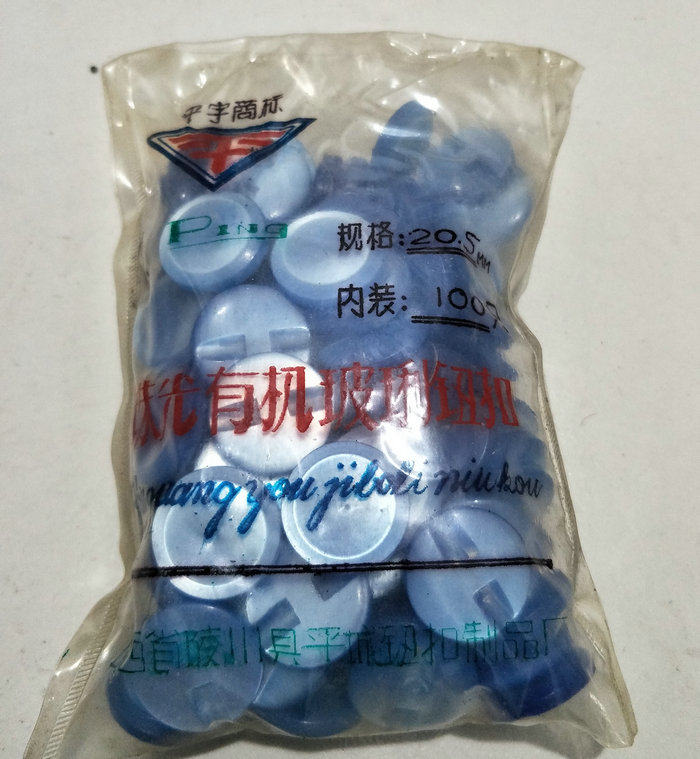 Ностальгический старый инвентарь в 1970 -х годах, жемчужные органические стеклянные кнопки, Blue 20,5 мм