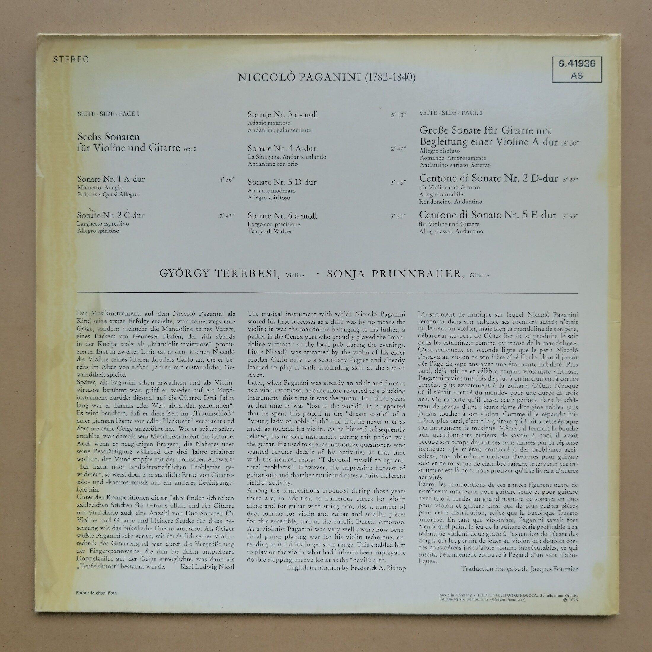 LP Vinyl Gyyrgy Terebesi Pagnini Violin Guitar Sonata Episode 2