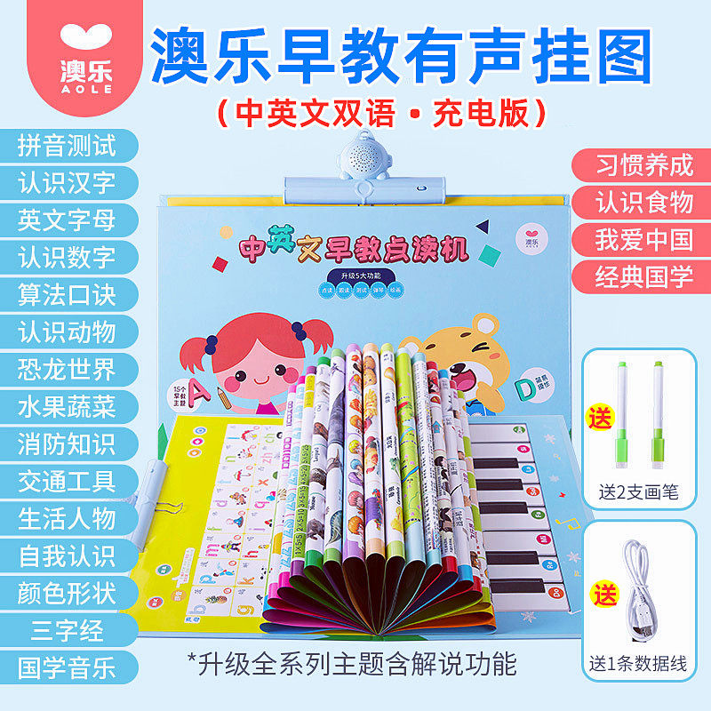 Флип-чарт, обучающая машина, игрушка, зарядный кабель, раннее развитие, со звуком, английский