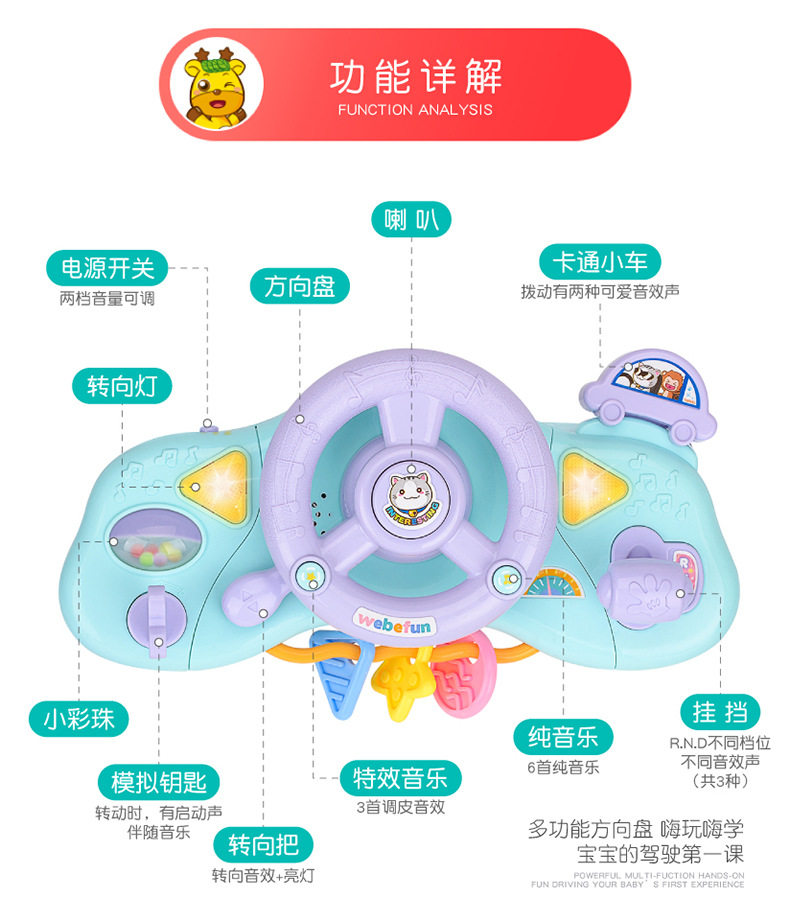 Детский музыкальный руль, детская реалистичная игрушка, раннее развитие, 0-6 лет, подарок на день рождения, звуковые эффекты