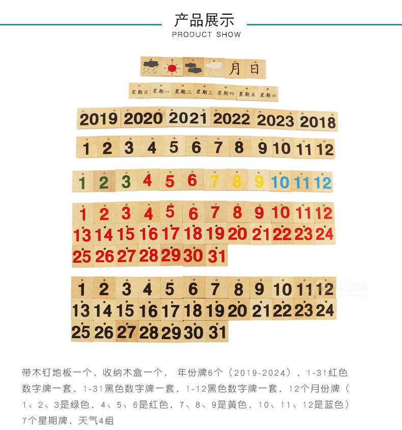 Kemeit Teaching Edition Mongolian Monte Montessori Daily Weather, Month, Month, Day Cognitive Monte Calendar Table