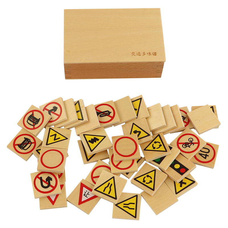 Учебные пособия Монтессори, детская игрушка, знаки дорожного движения, домино, раннее развитие, 40 штук