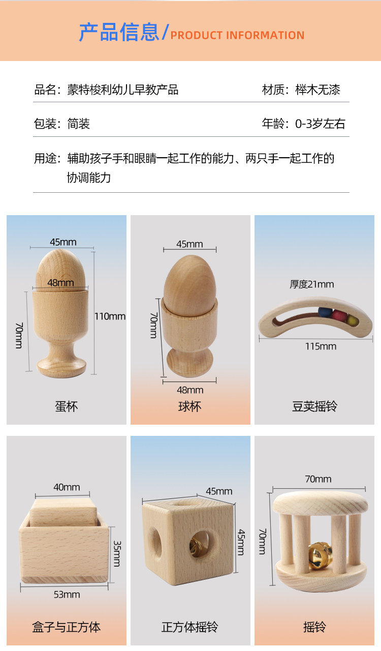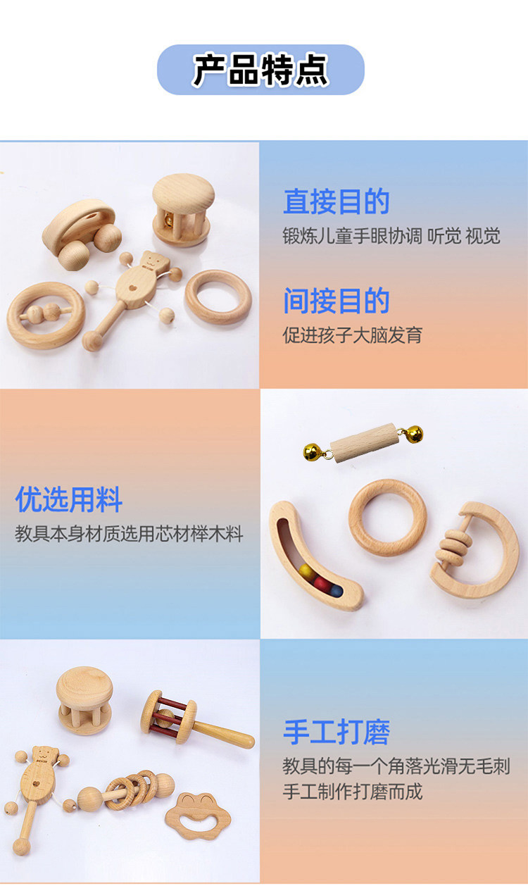 Деревянная игрушка Монтессори для новорожденных для младенца, погремушка, 0-1 лет