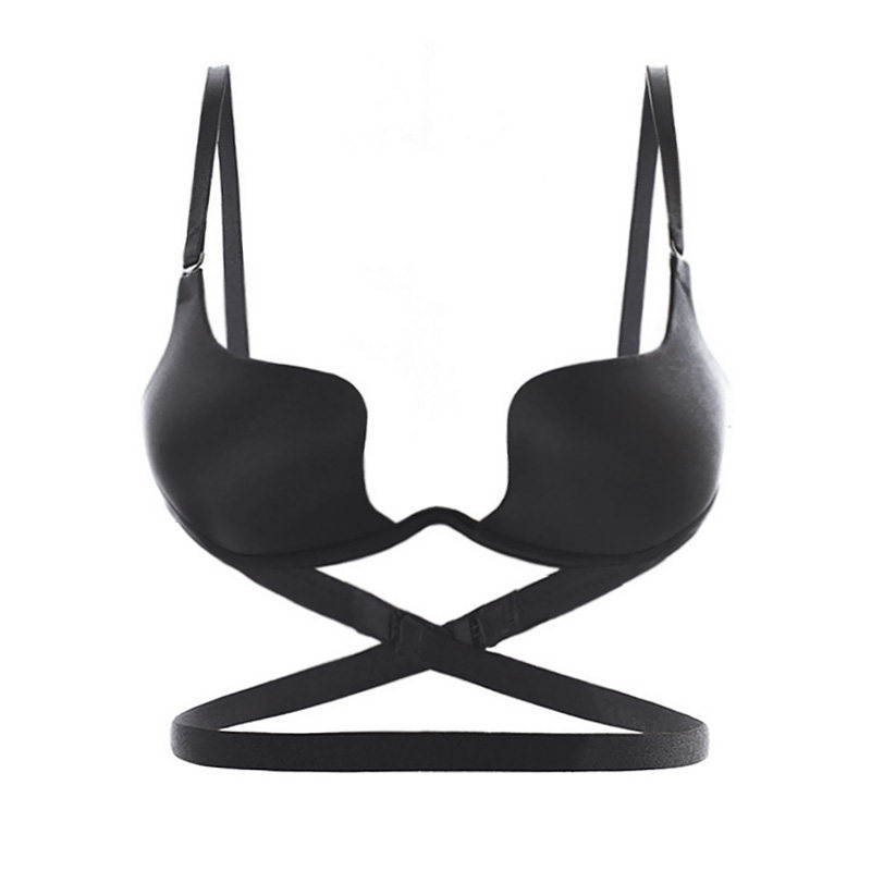Бесплатная доставка задняя платье U -образной стороной толстой концентрации собрал канавку легкую поверхность без лифчиков для трассировки, чтобы вытянуть черно -белую кожу ремня