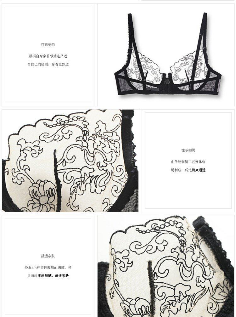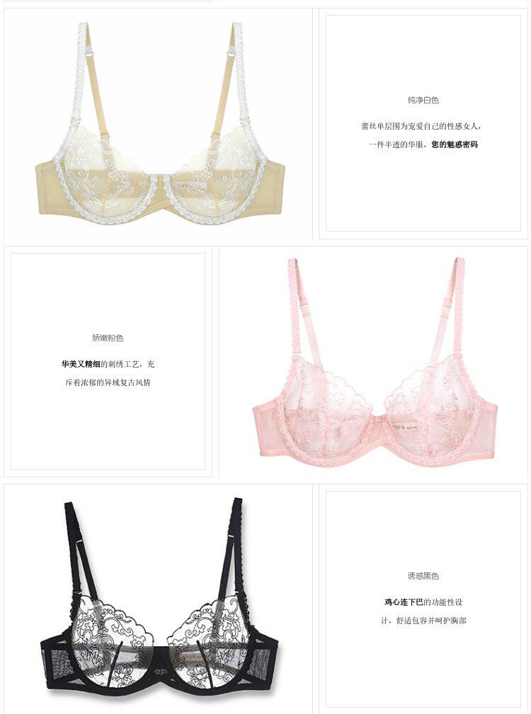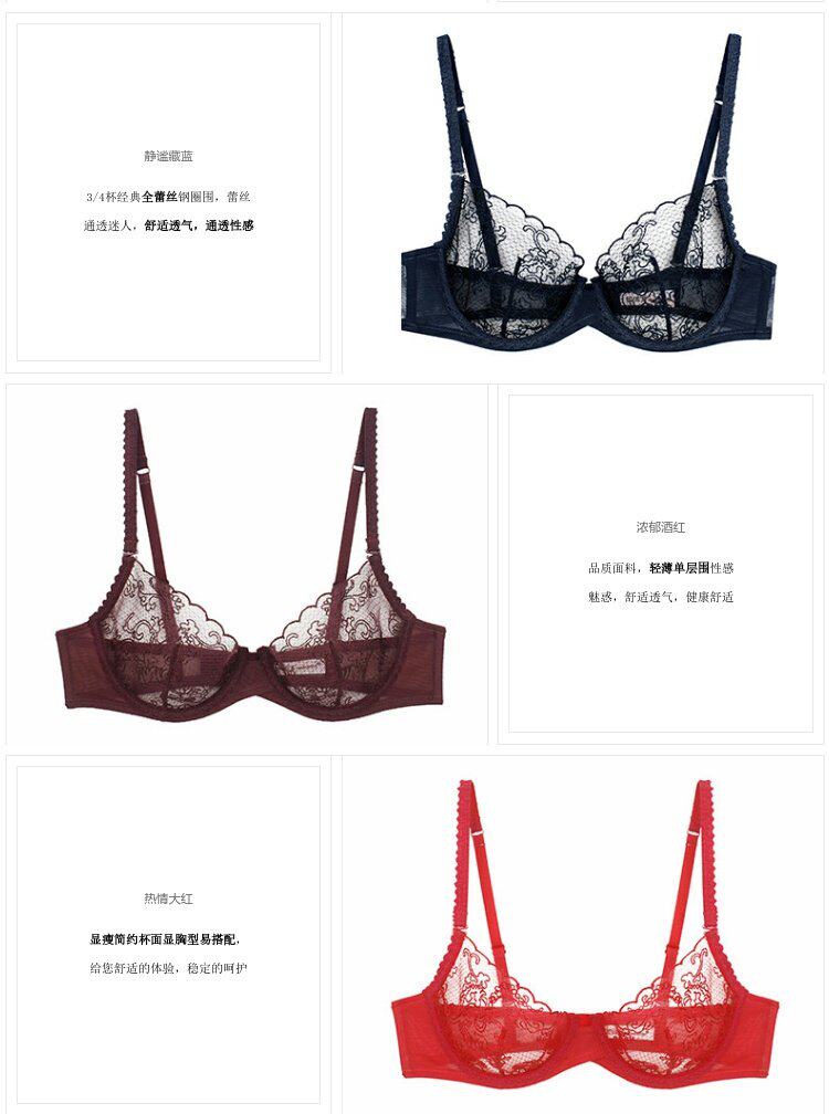 Классический сексуальный ультратонкий кружевной дышащий комфортный тонкий бюстгалтер, с вышивкой
