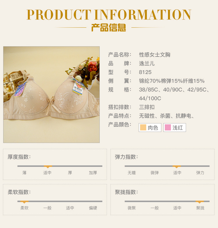 Нижнее белье Среднее -три -наряды C -c -c -c -c -c -c -Steeel Circles без магнитного без железа не может пройти дверь безопасности, чтобы собрать бюстгальтер Yulan ER