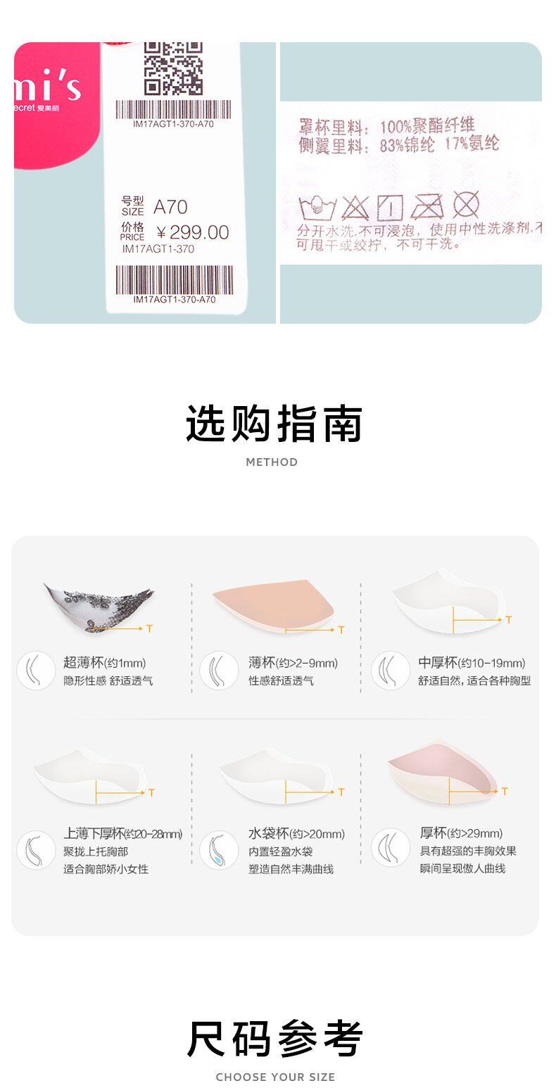 爱美丽 Нижнее белье IMIS без стальных колец, небольшая грудь, собравшаяся, чтобы сделать большой твердый утолщенный бюстгальтер Большой чашку более тонкой IM17AGT1